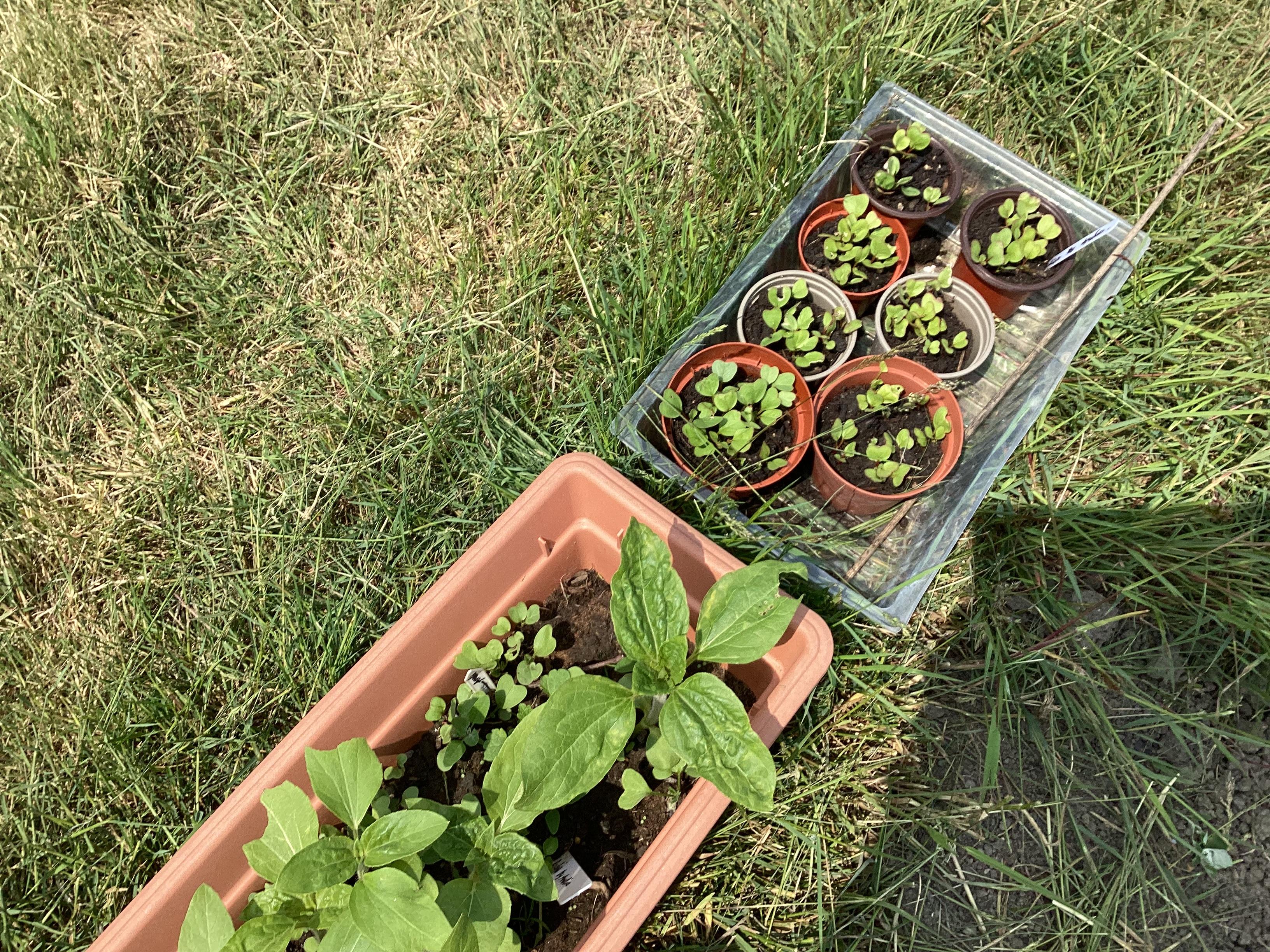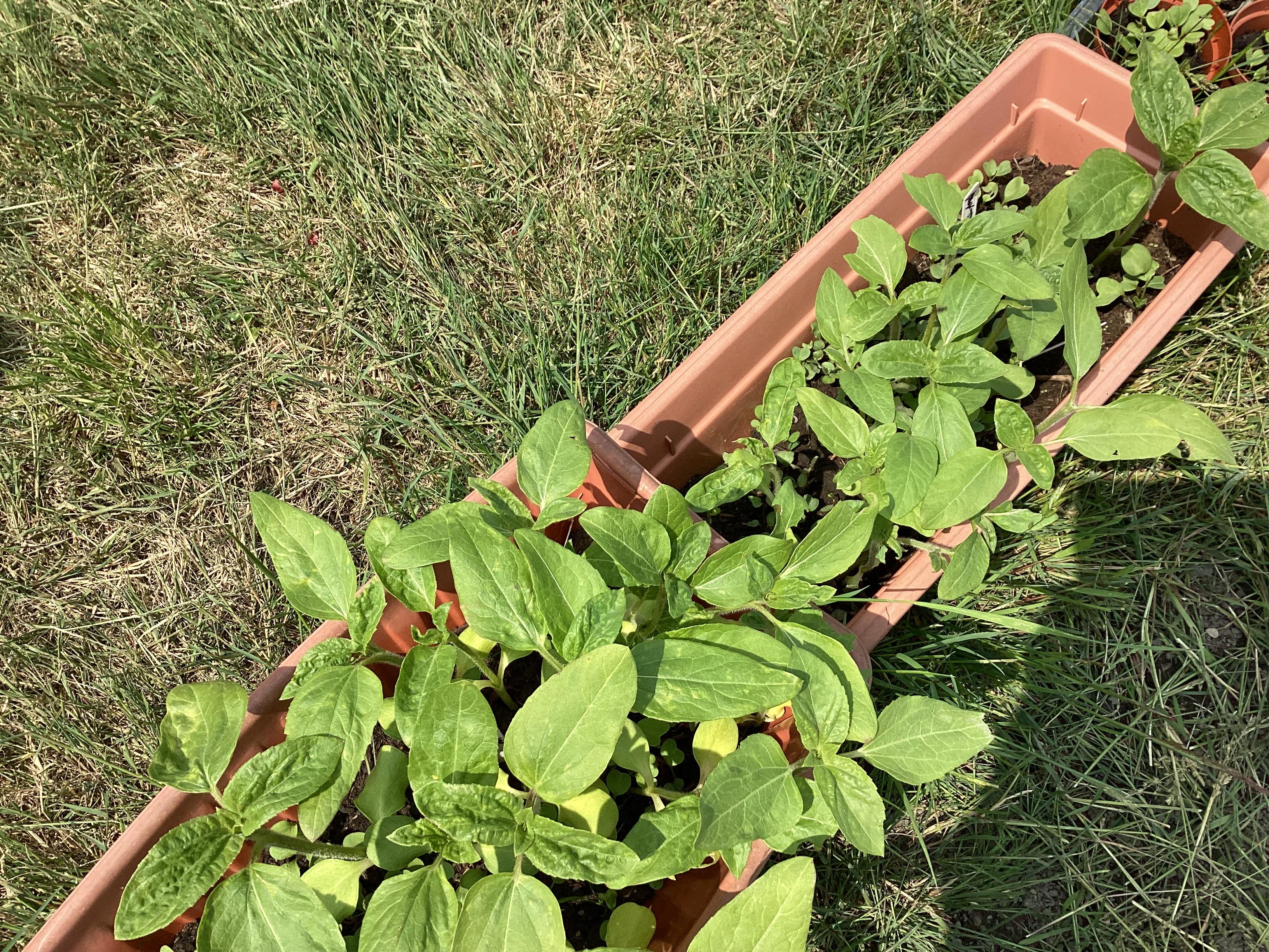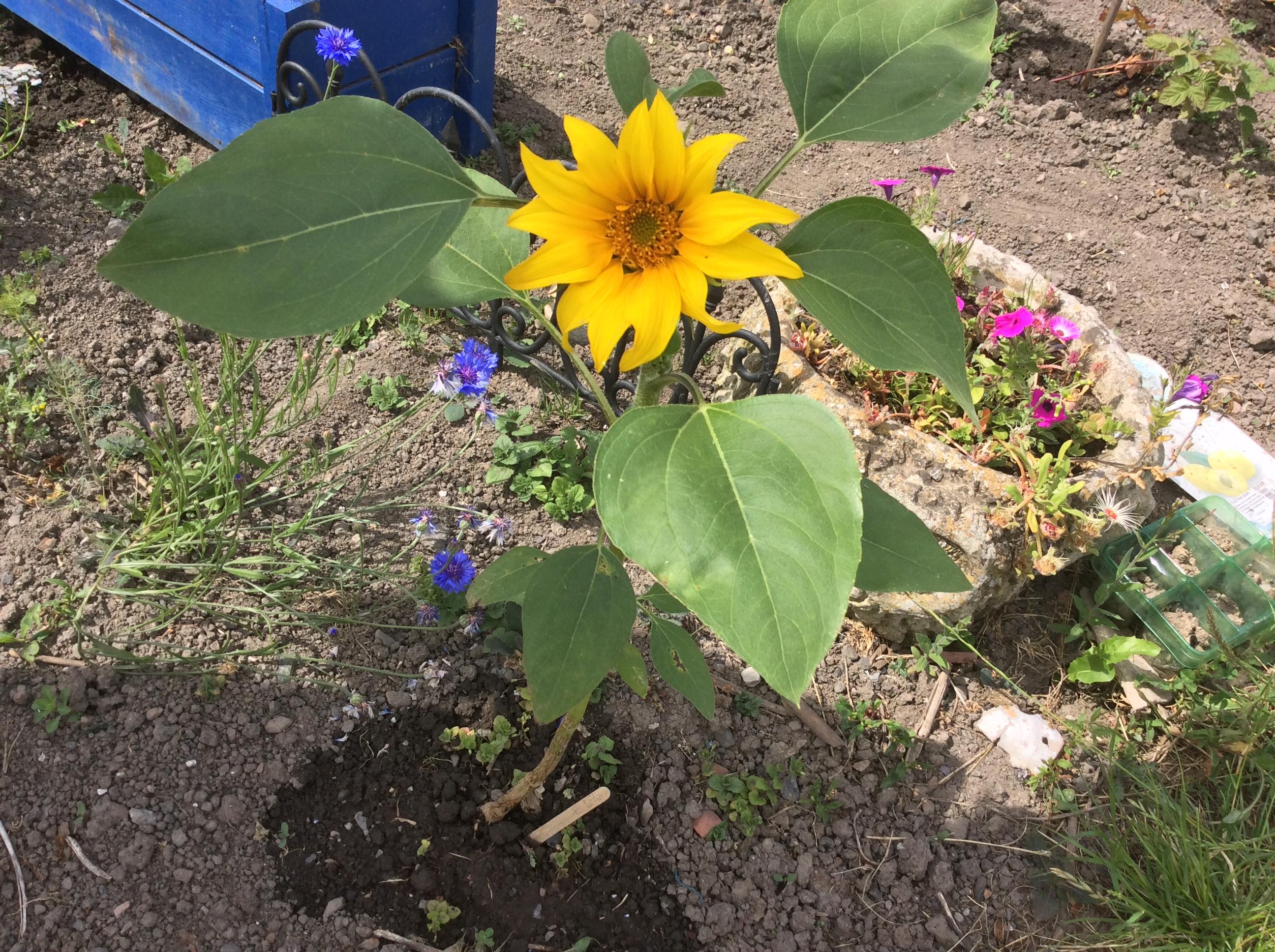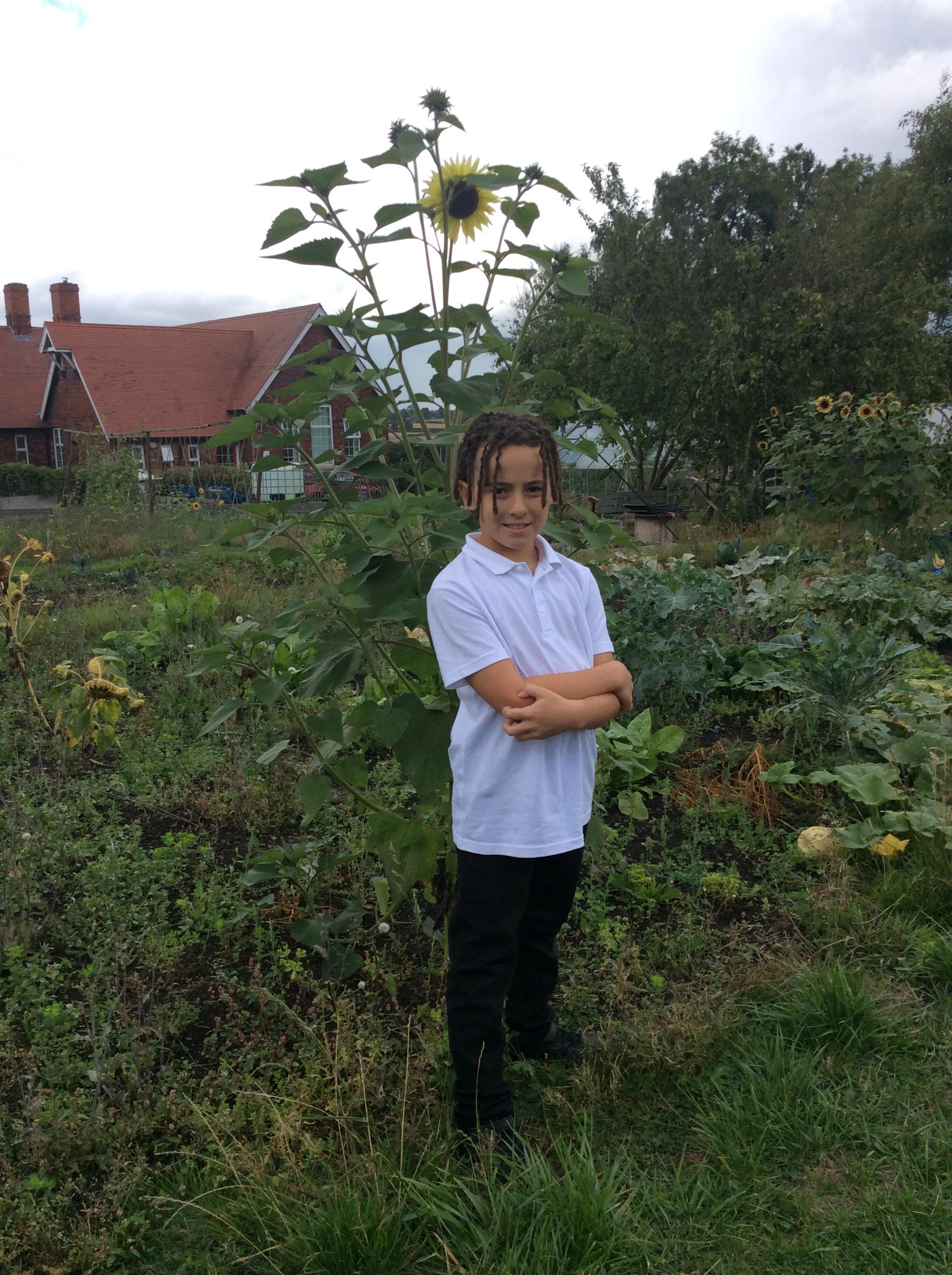 A big well done to Indie who planted these herself during lockdown. Some are nearly 7ft tall already and they have loads of growing left to do. No signs of flowers yet! She planted the seeds in pots and transplanted them to bigger pots by hand all on her own, before we put them in the ground.