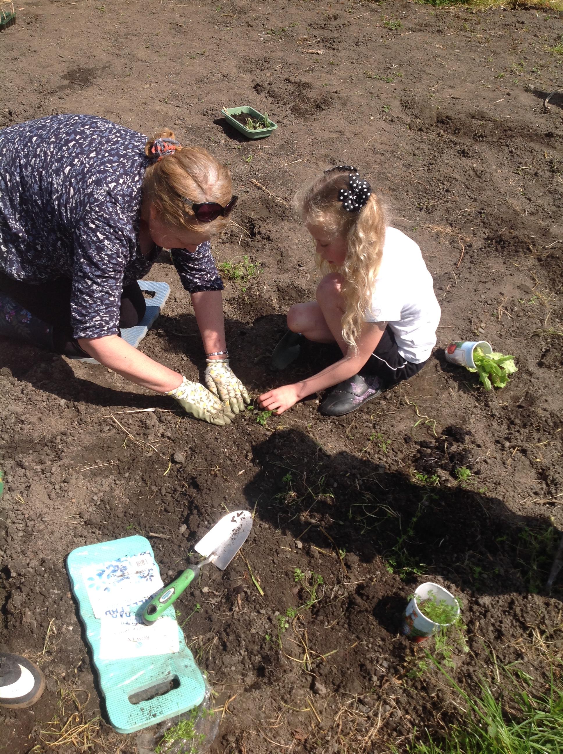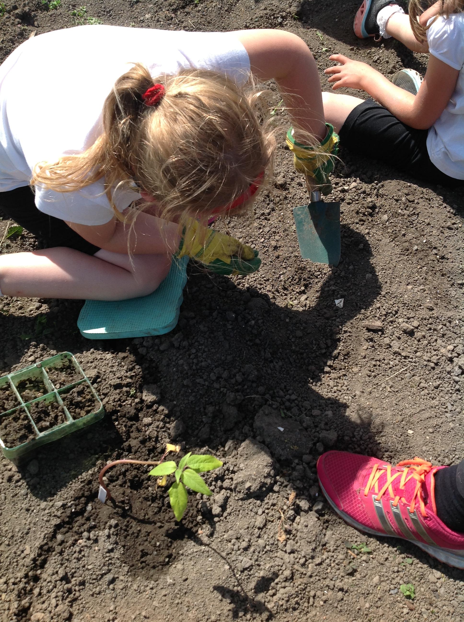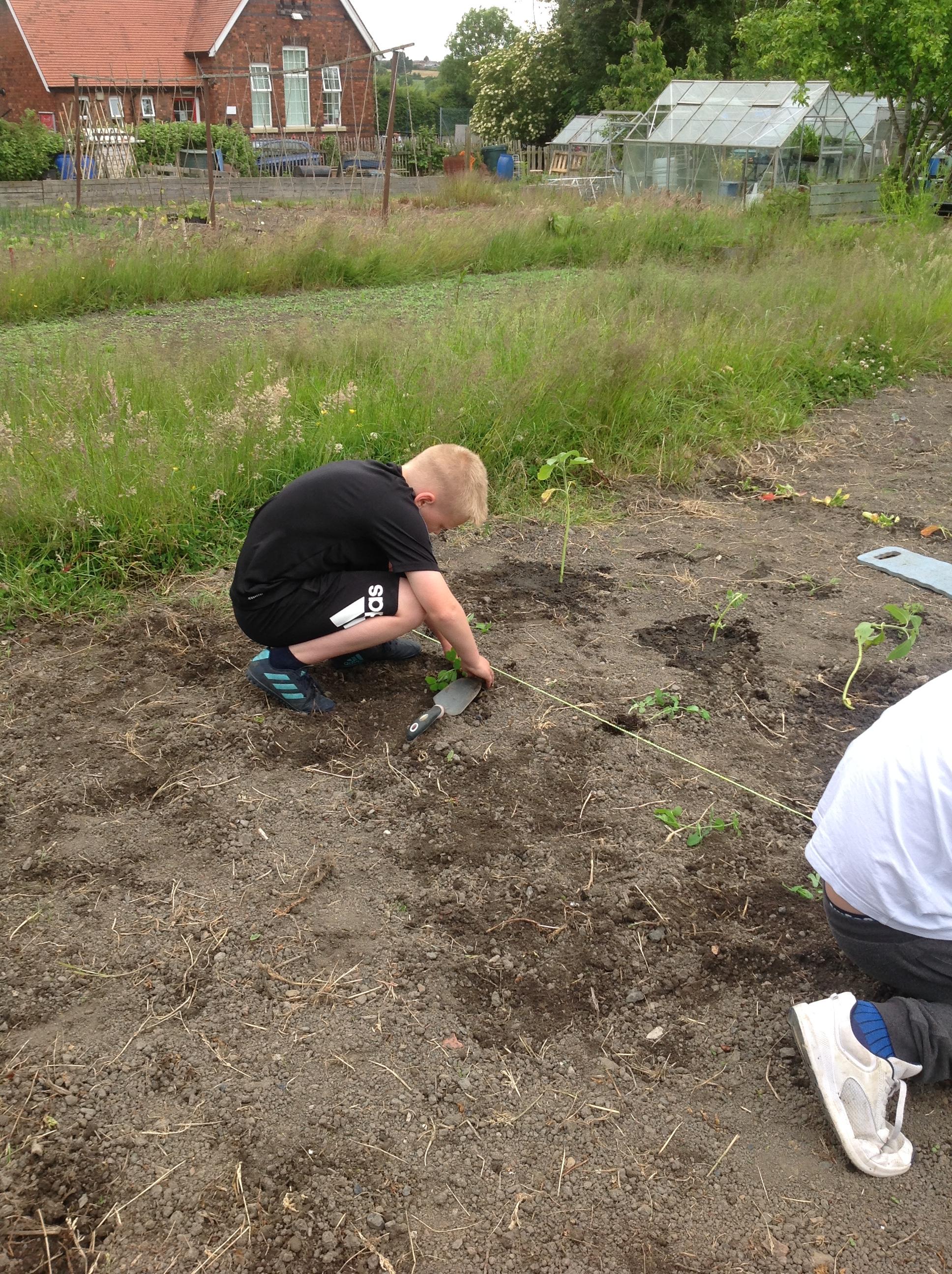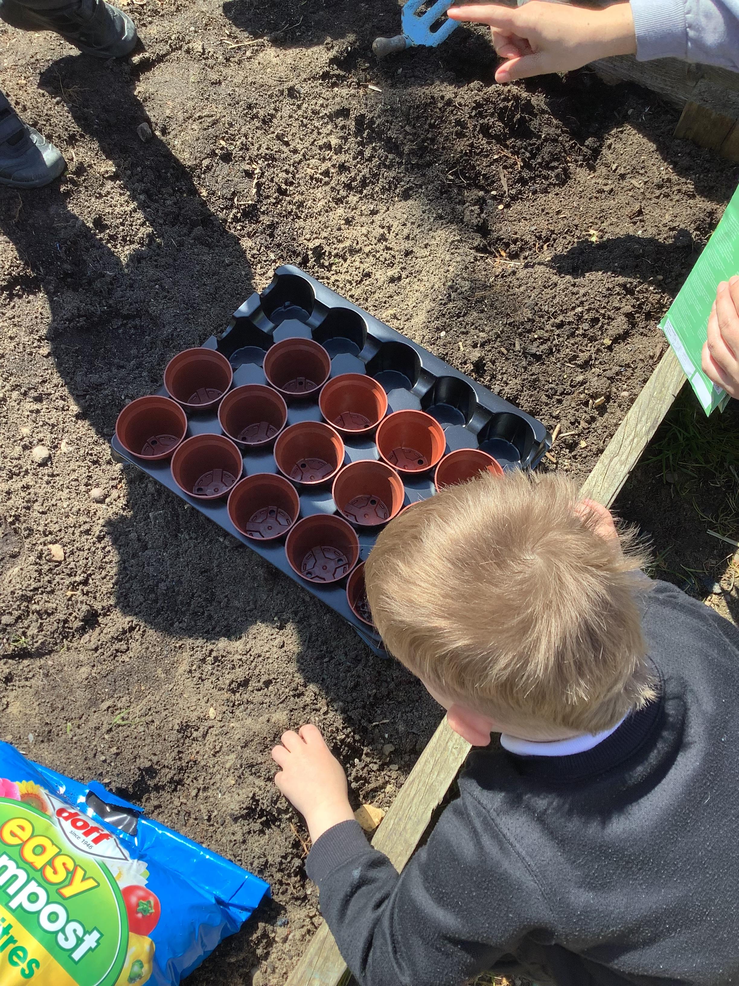 The children planted their first plants on the allotments this week.