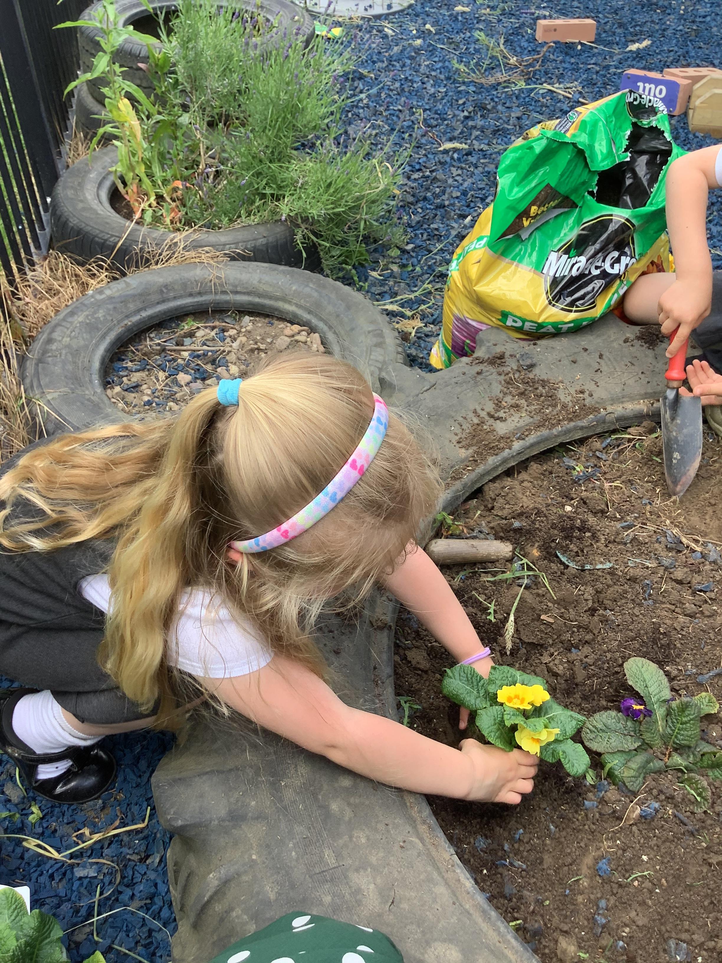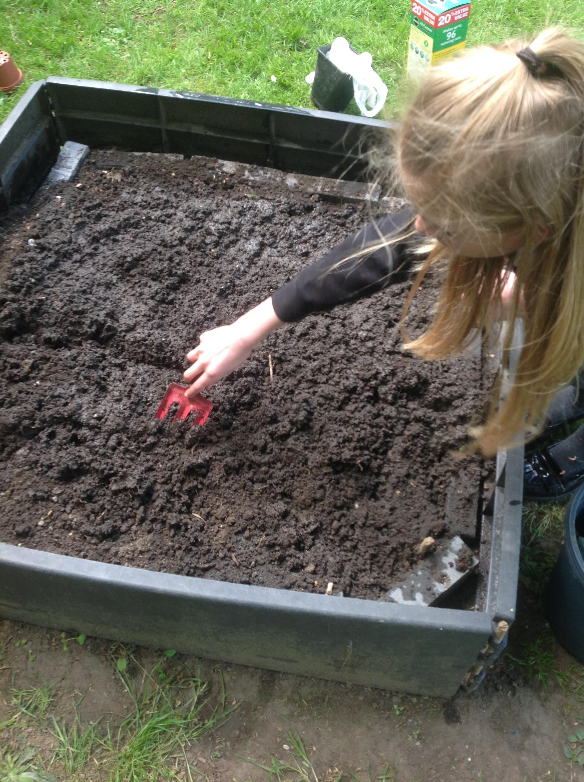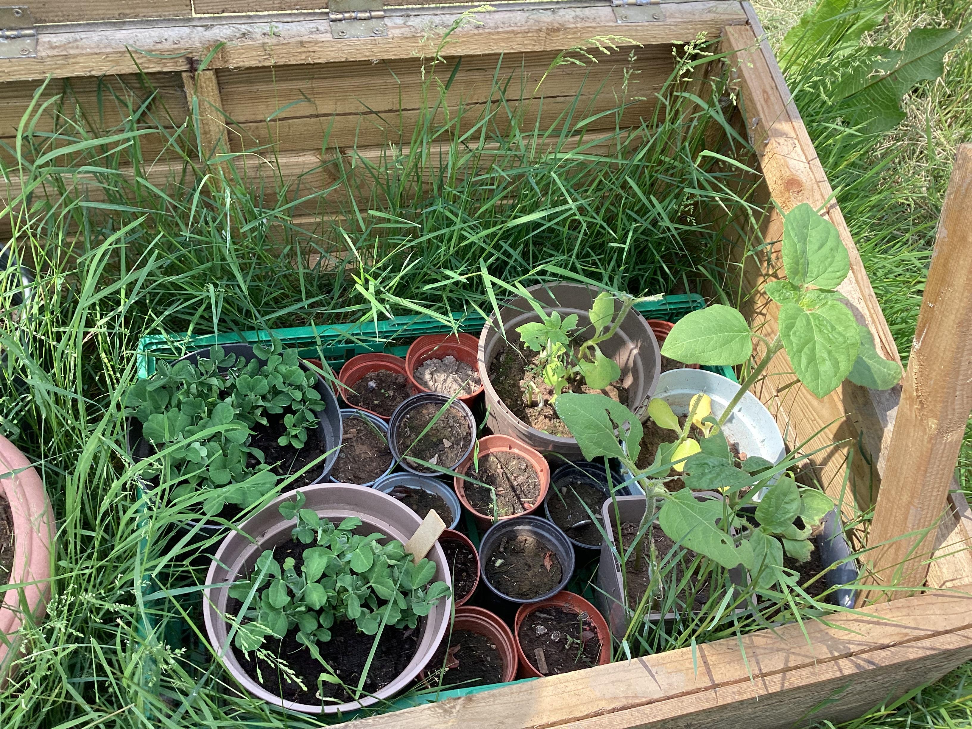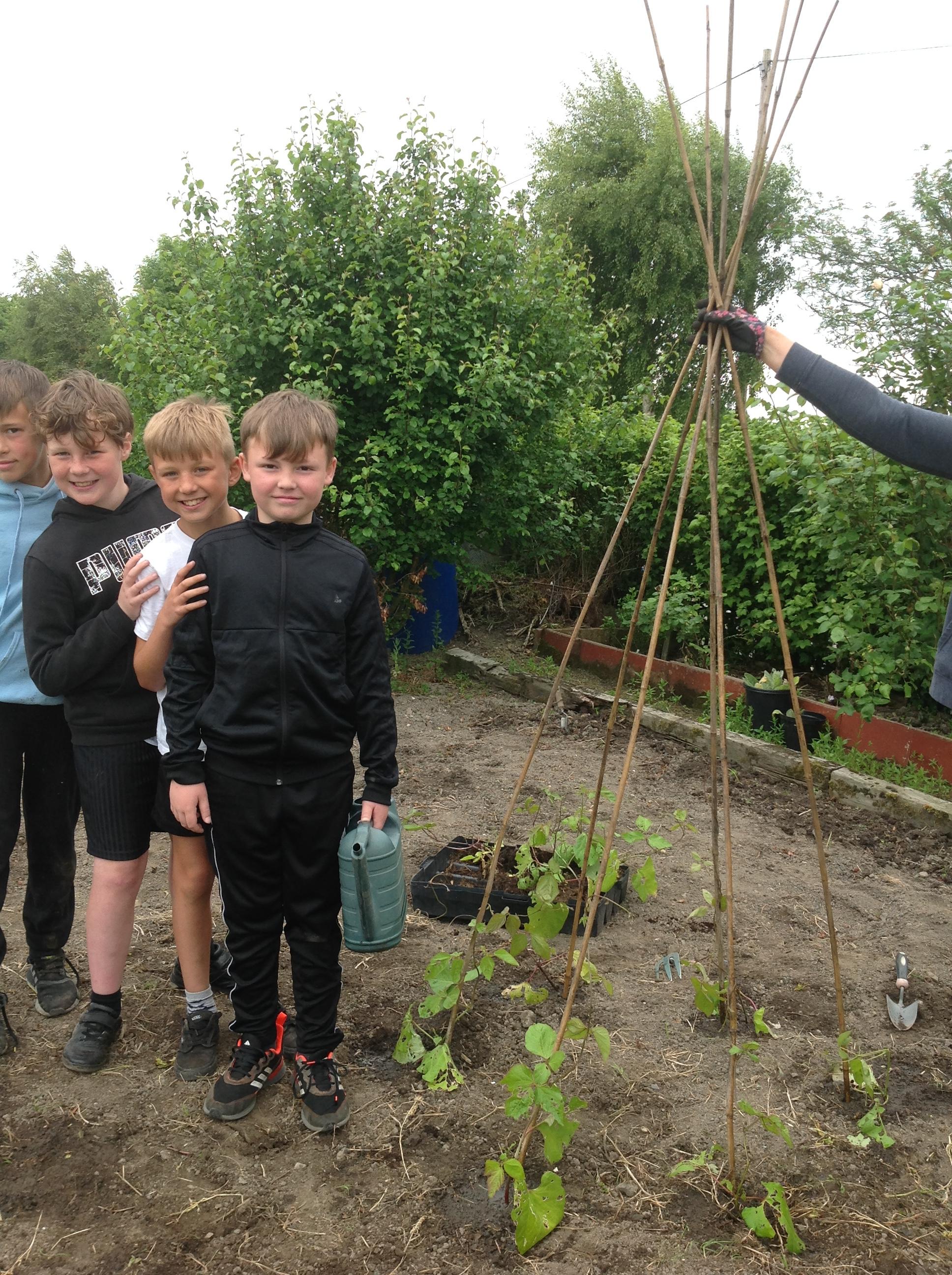 The children planted their first plants on the allotments this week.