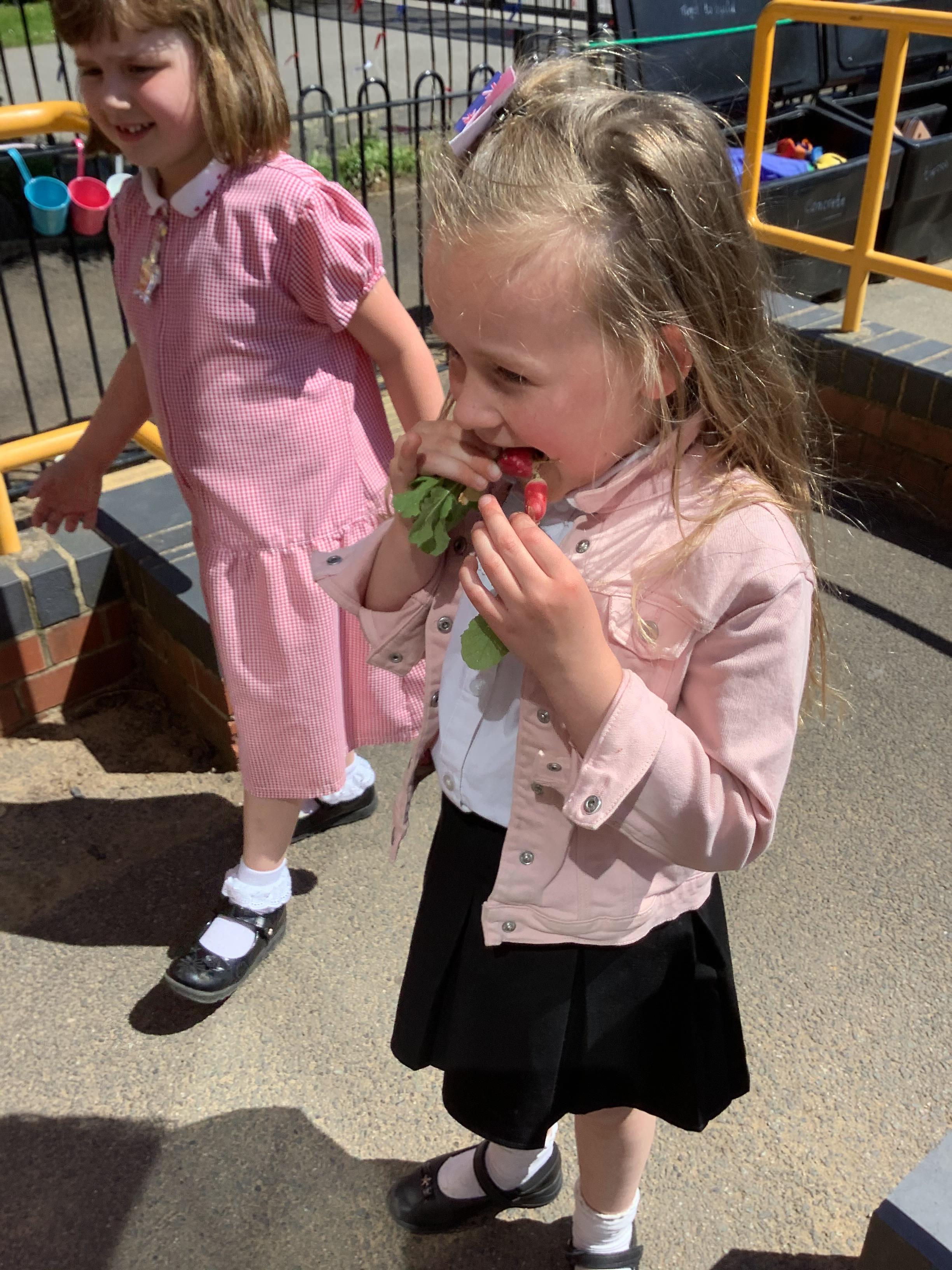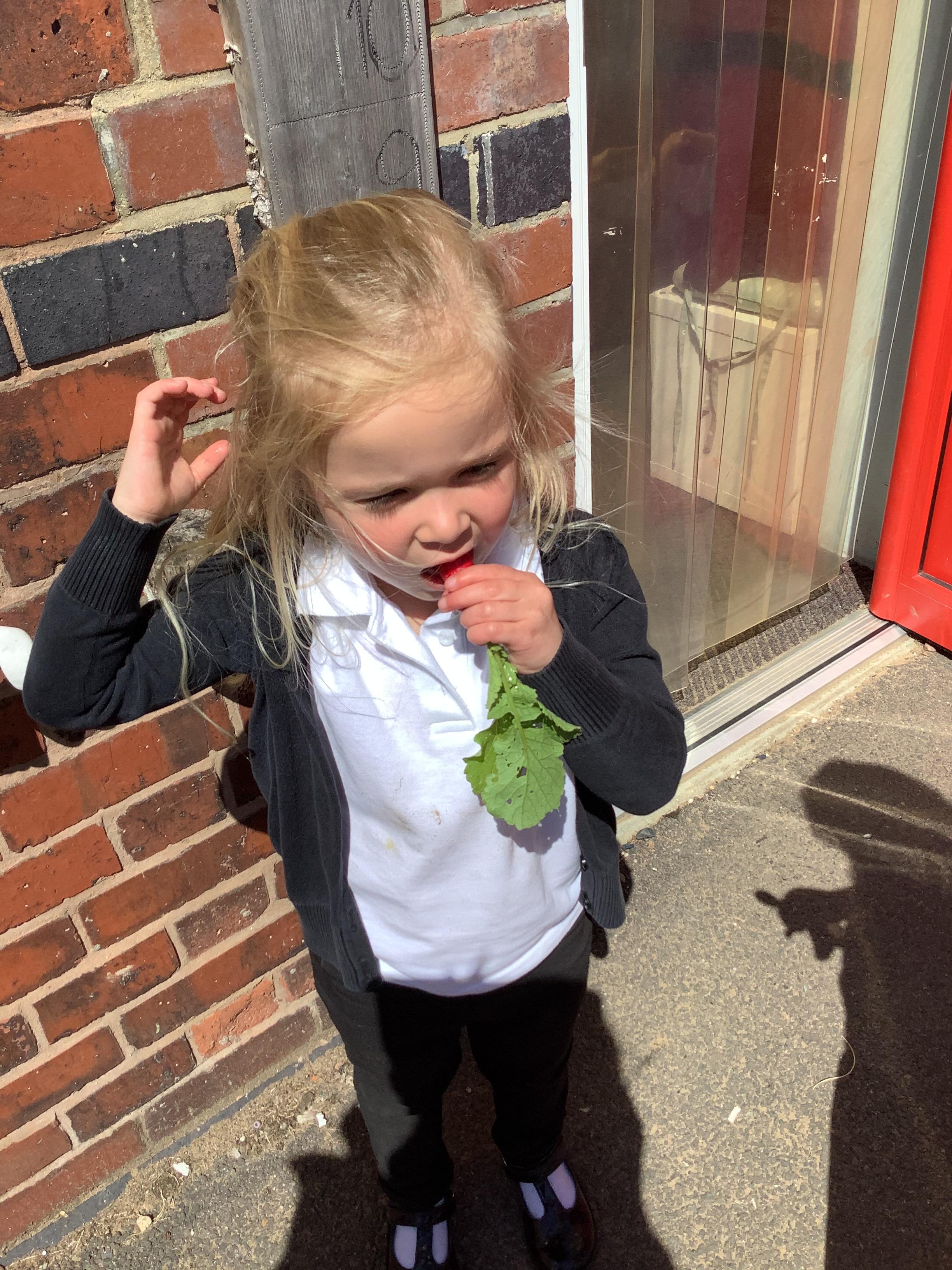 Little Explorers have been hard at work planting and now they have tried some of their own grown veg!