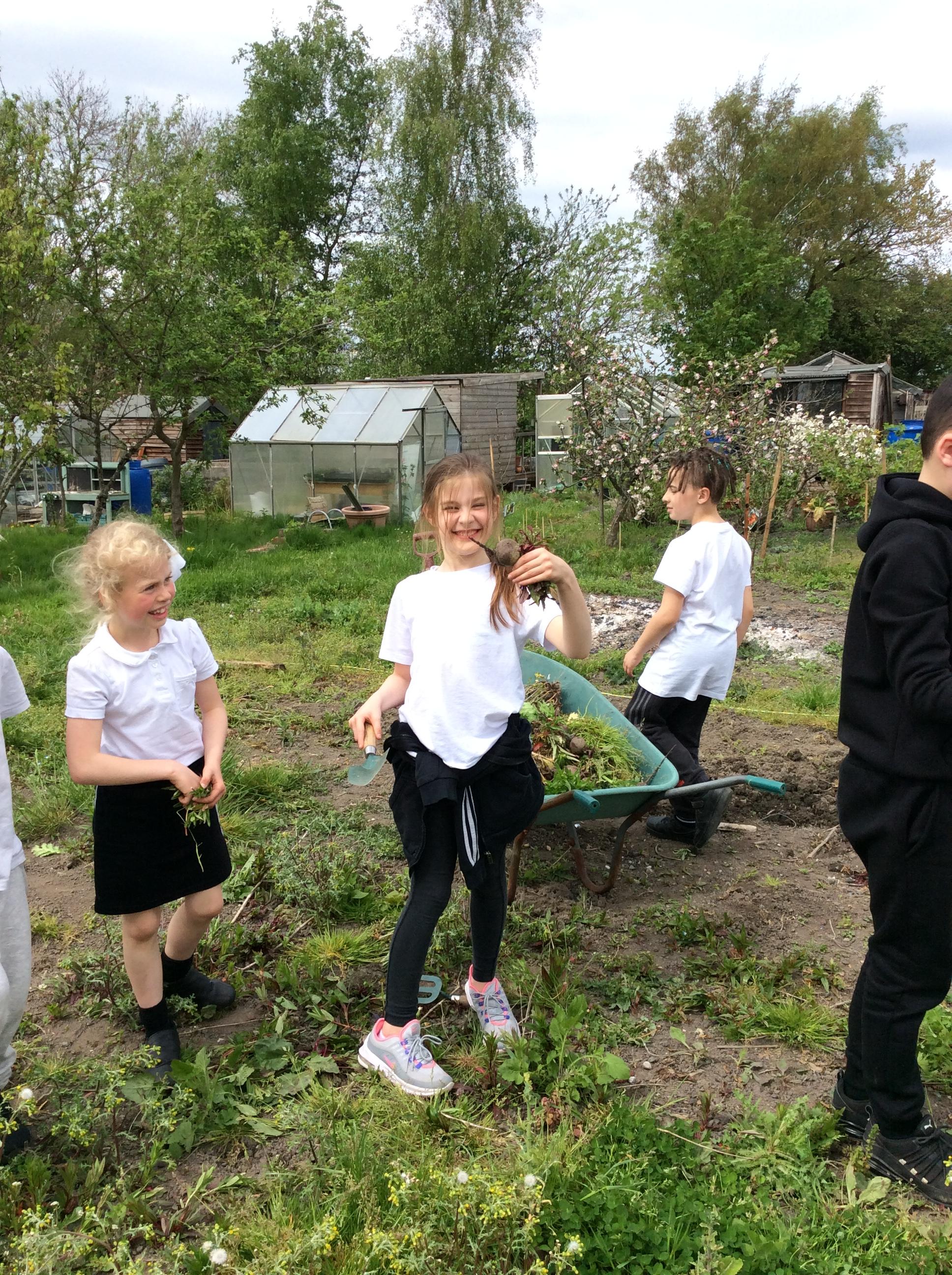 The children who worked on the allotments this afternoon has harvested some beetroot, radish and lettuce. They are going to ask our cook to boil the beetroot tomorrow and make a salad with the radish and lettuce! YUMMY!