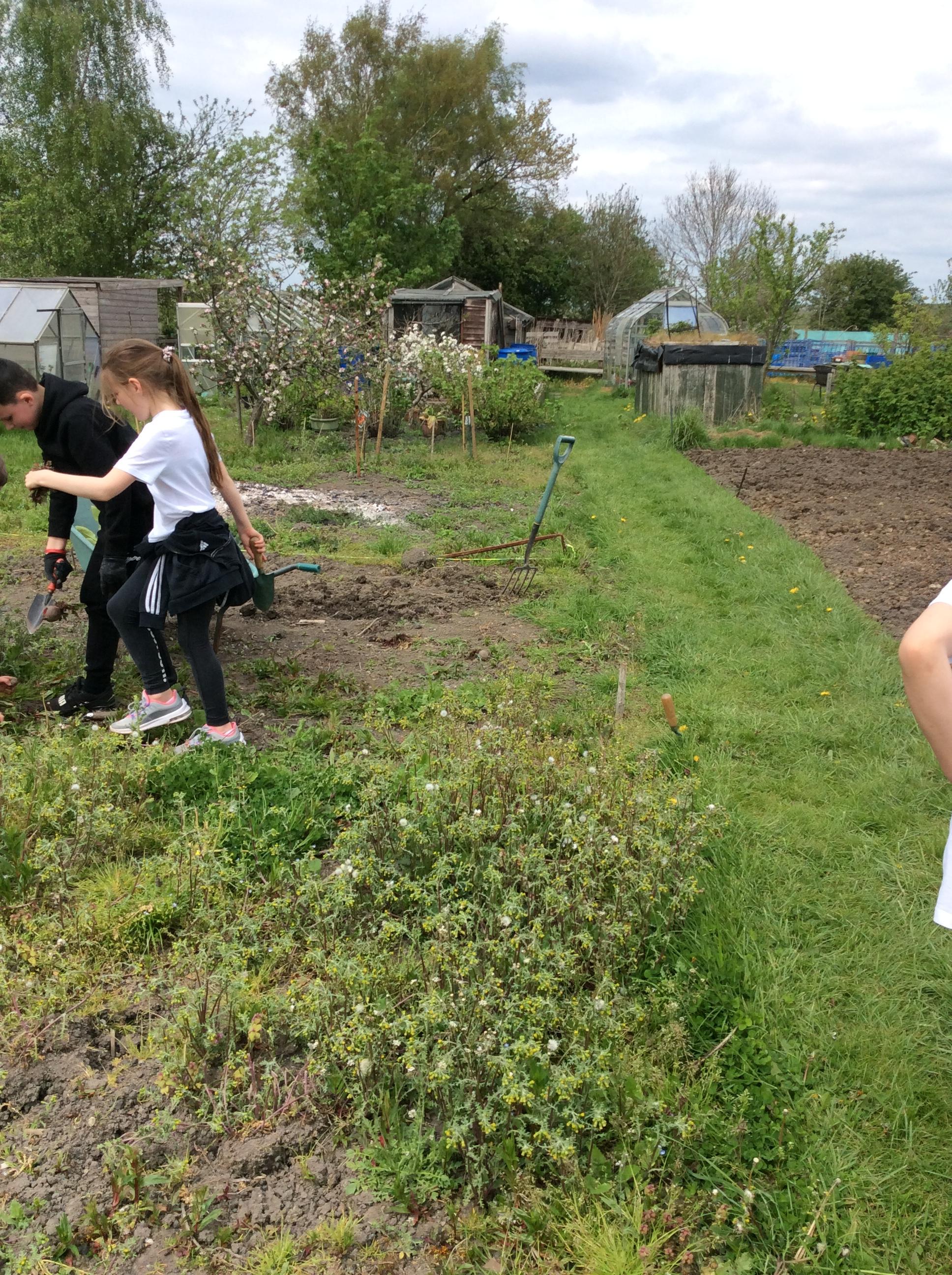 The children continue to clear the allotments.
