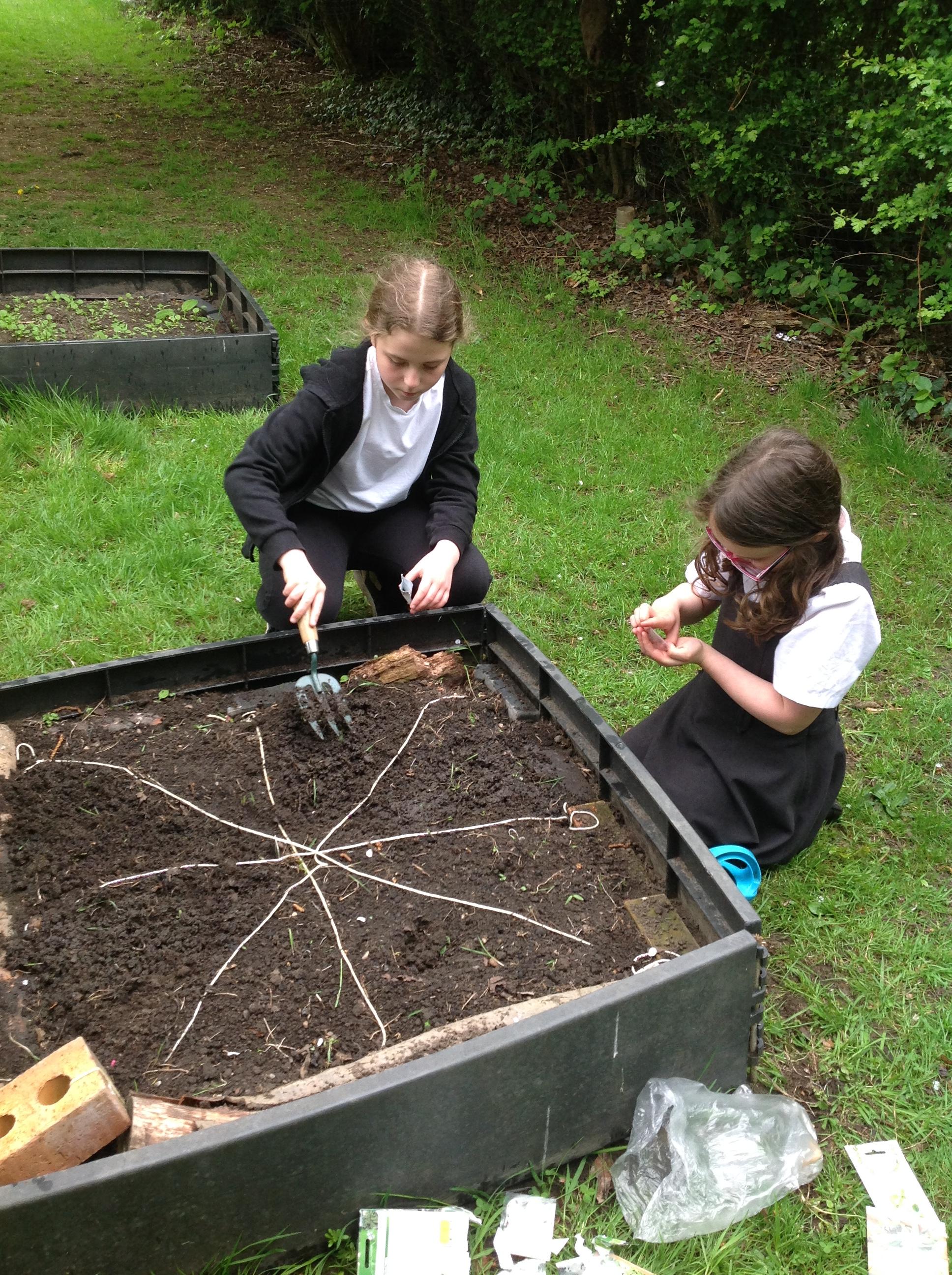 The year 5 & 6 class have been out and about in the local village planting some flower bombs for the summer.