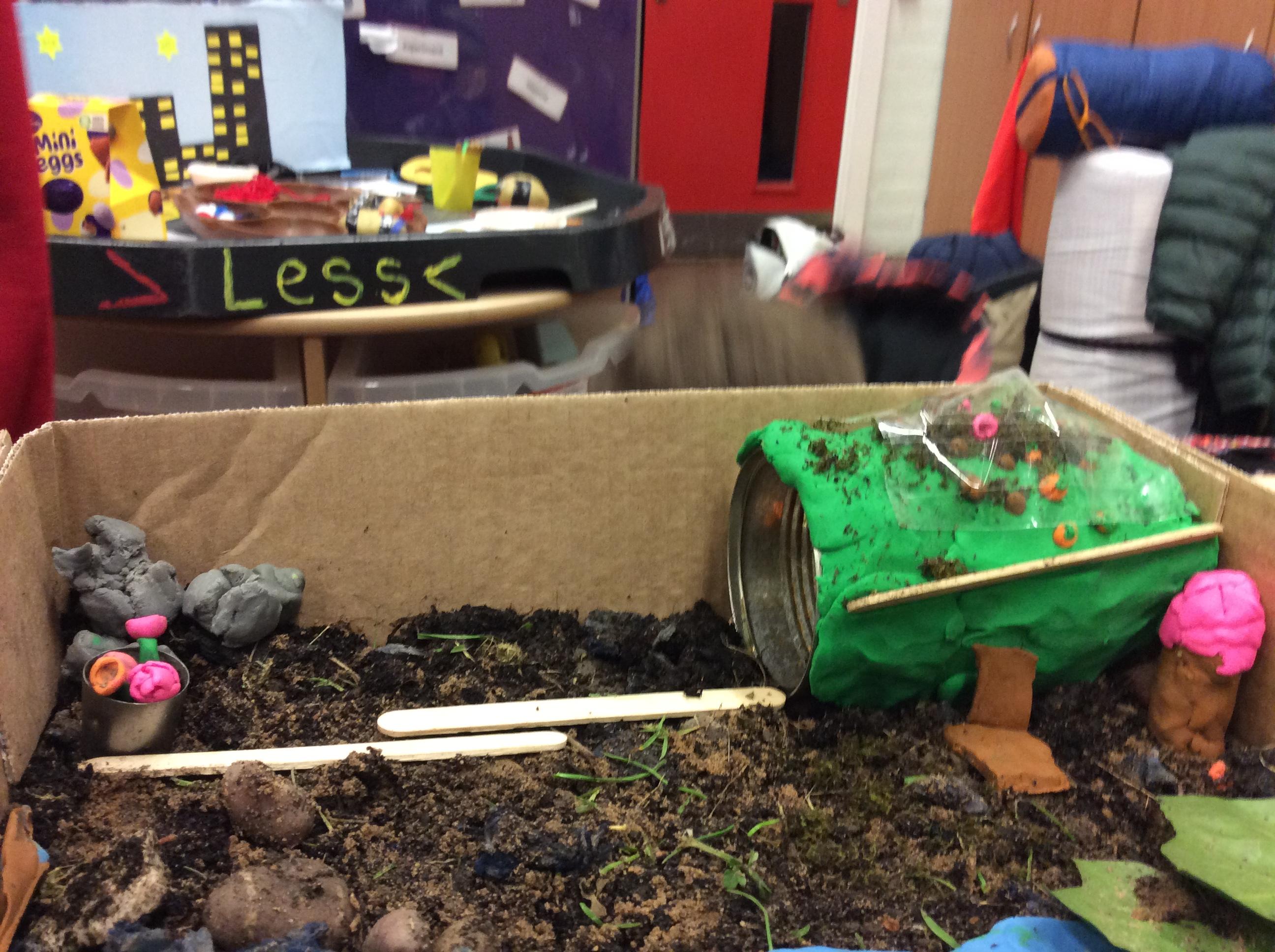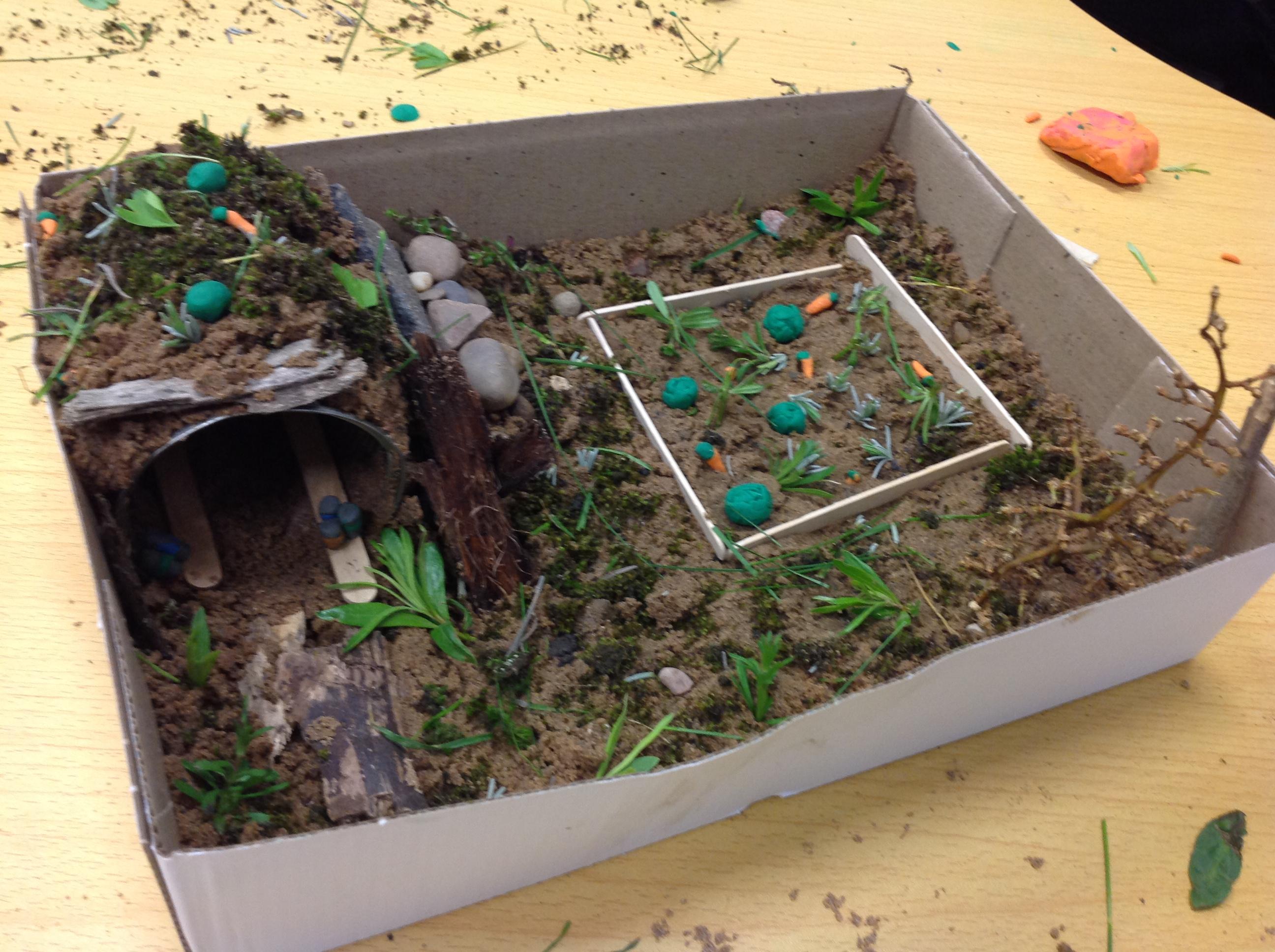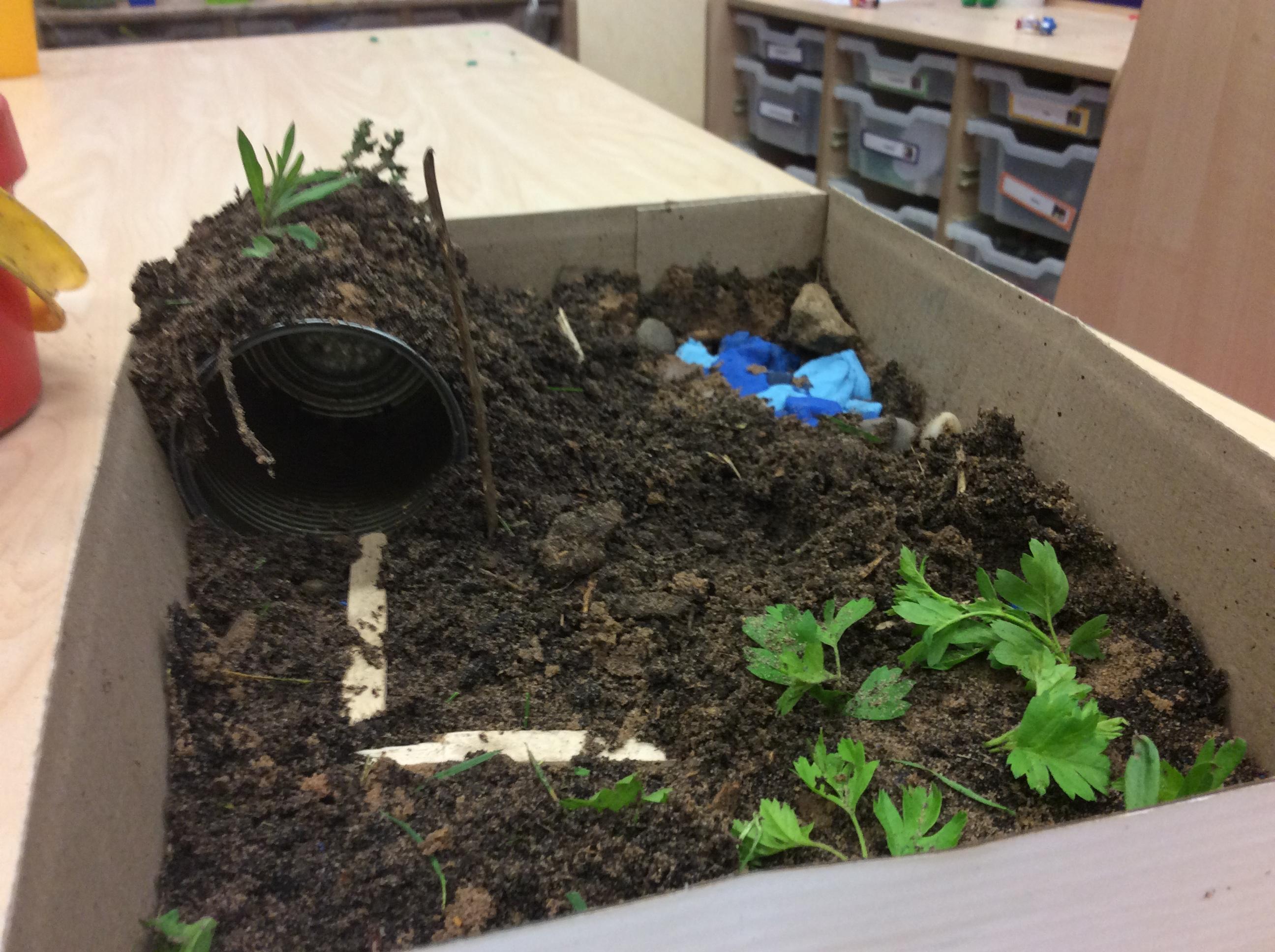 As part of their WW2 unit the year 5/6 class created anderson shelters at their class sleepover, theses included growing areas as families grew their own vegetables in war times.