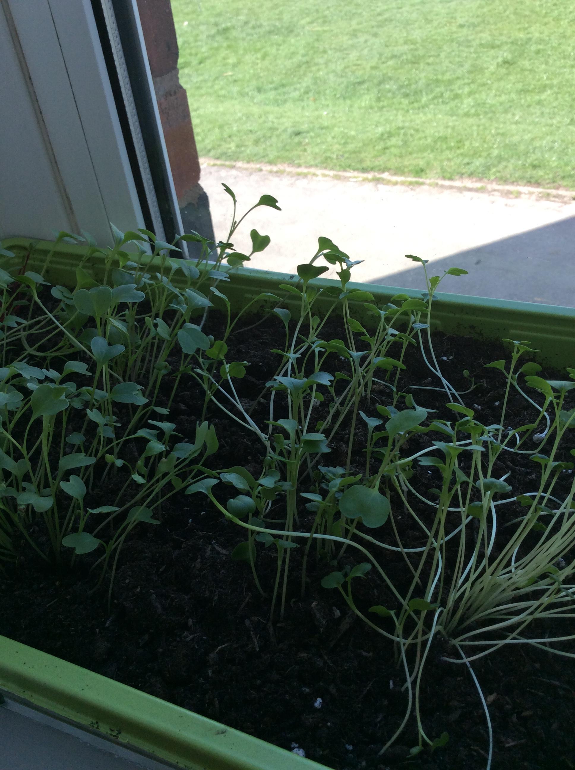 Alice (reception) has been growing cress for sandwiches and salads - well done Alice!