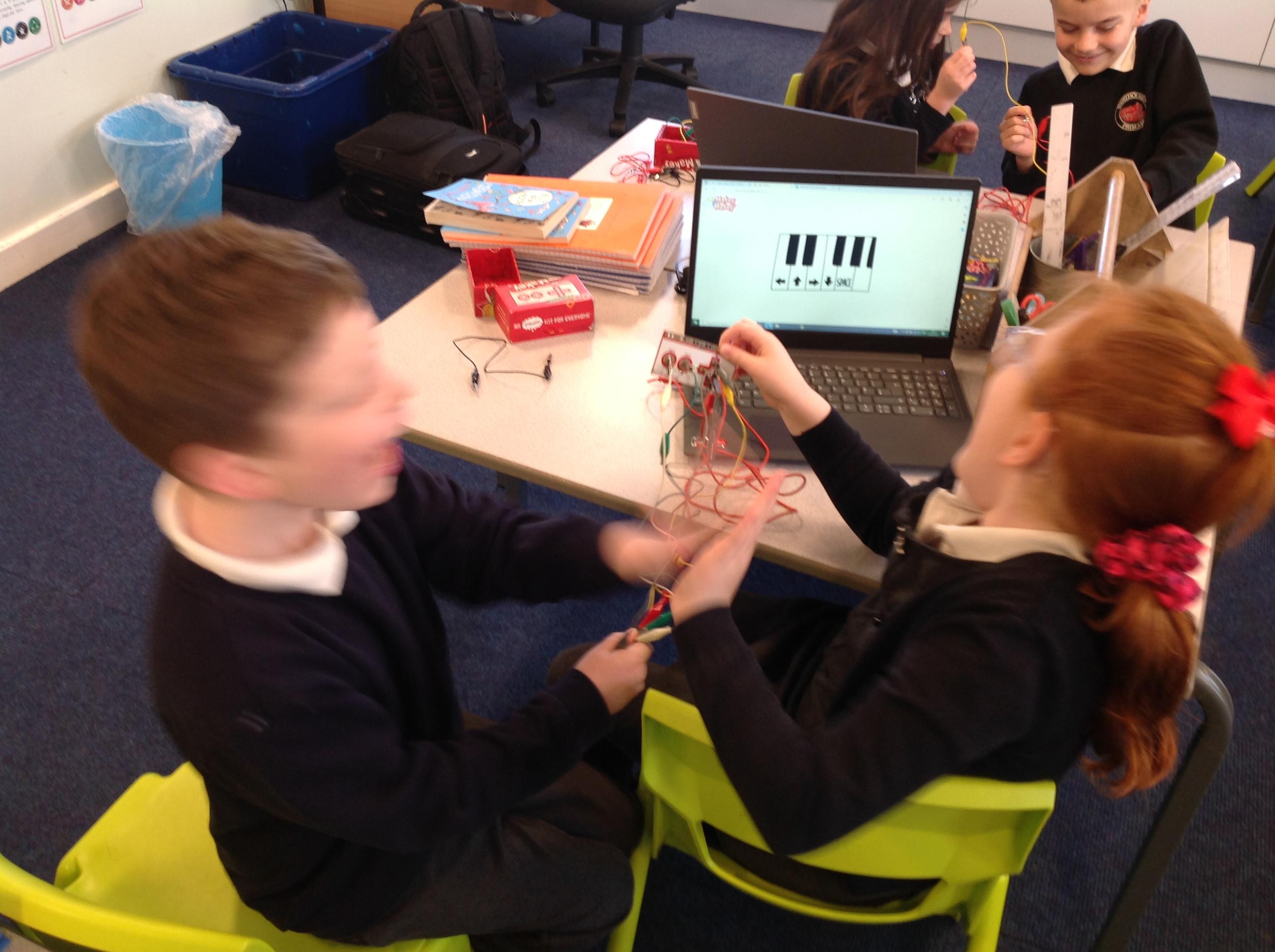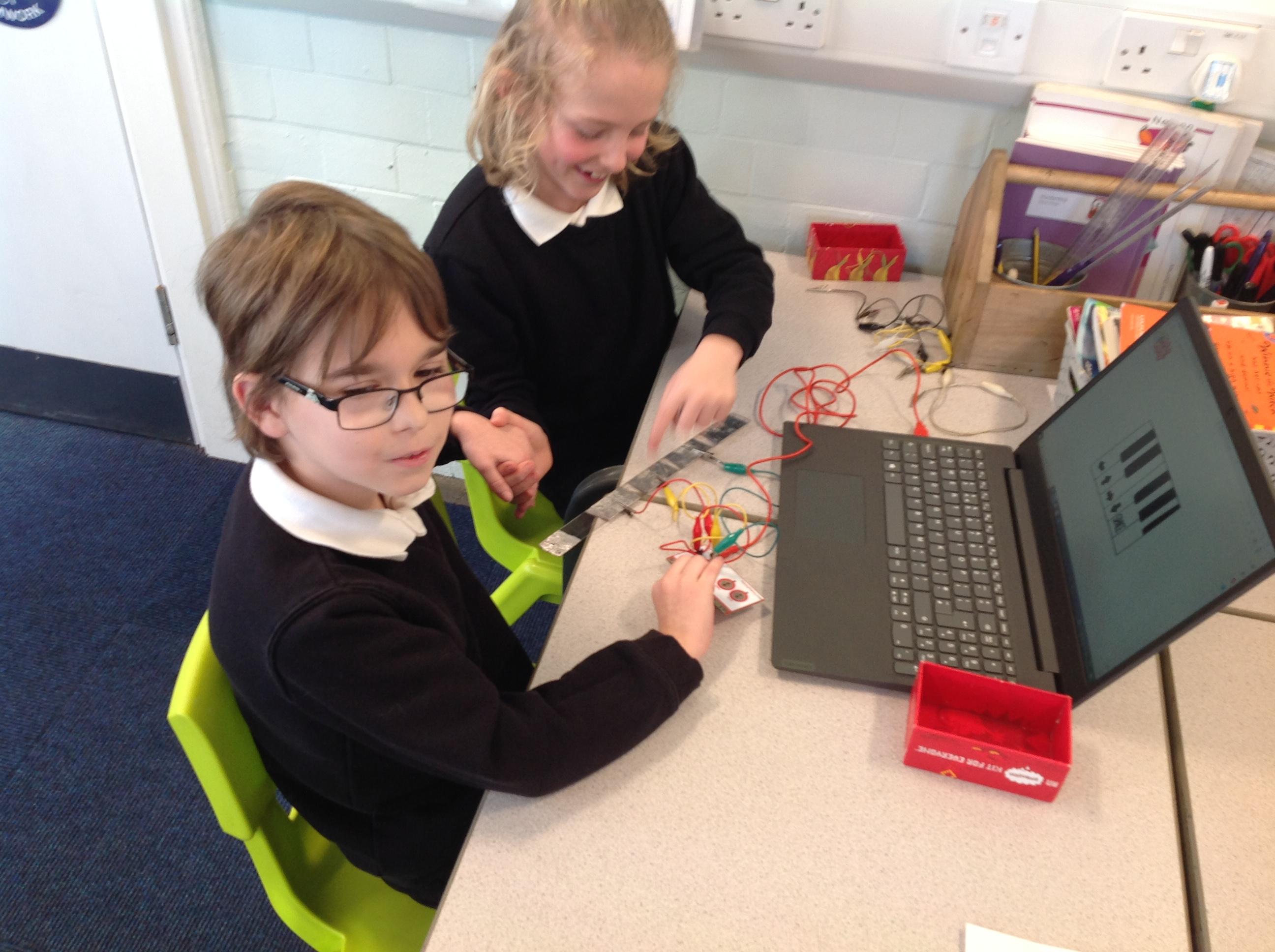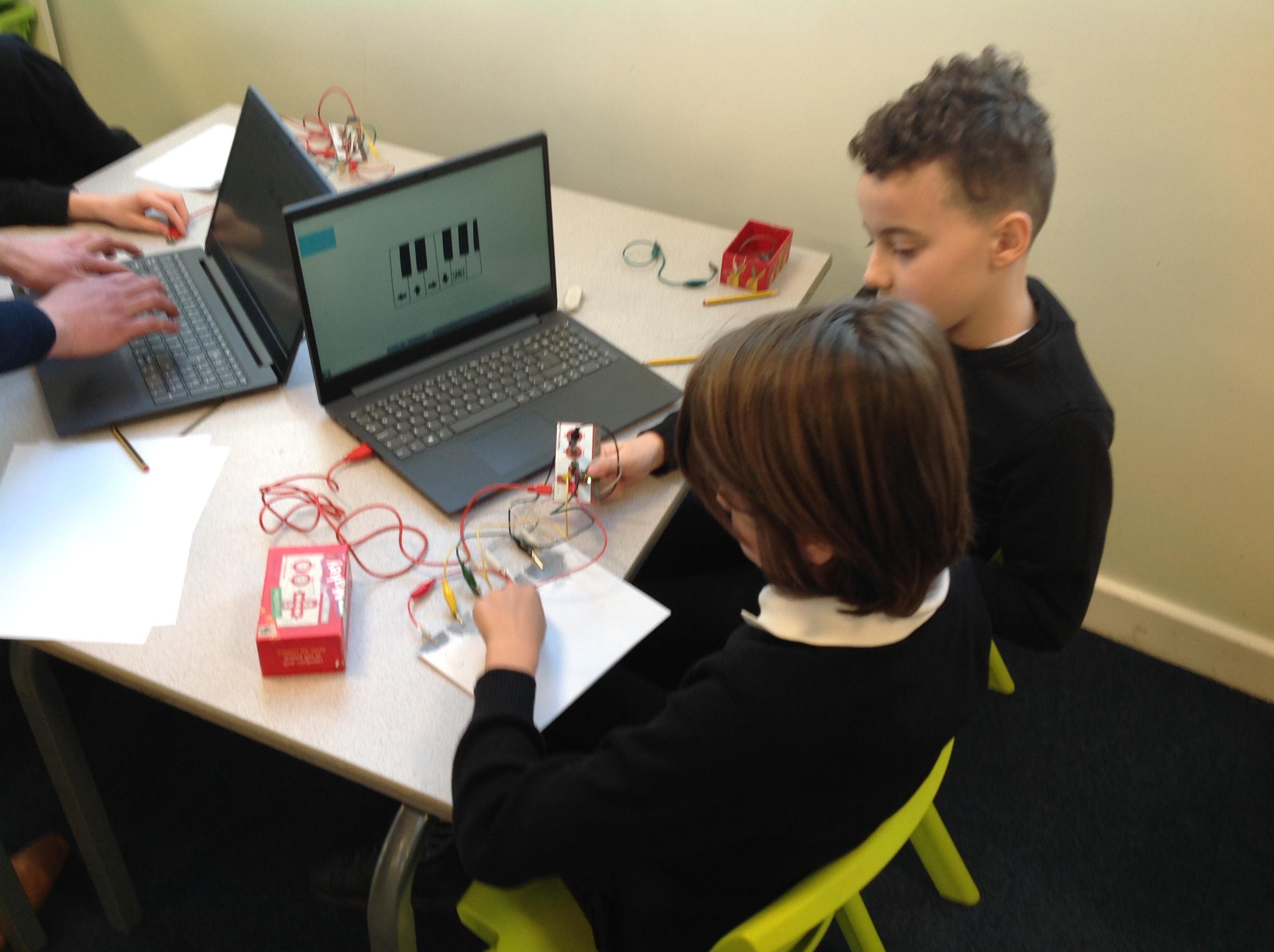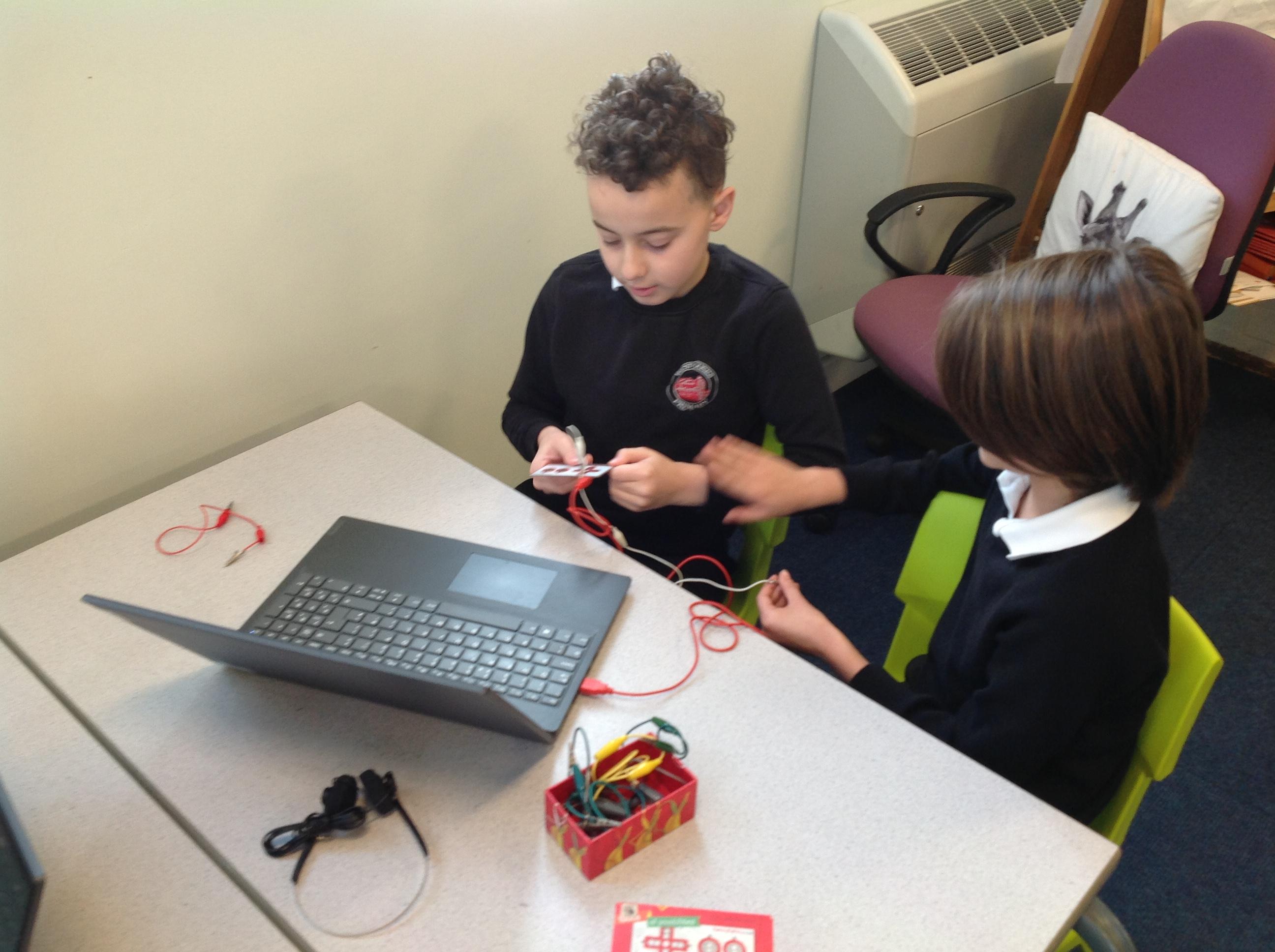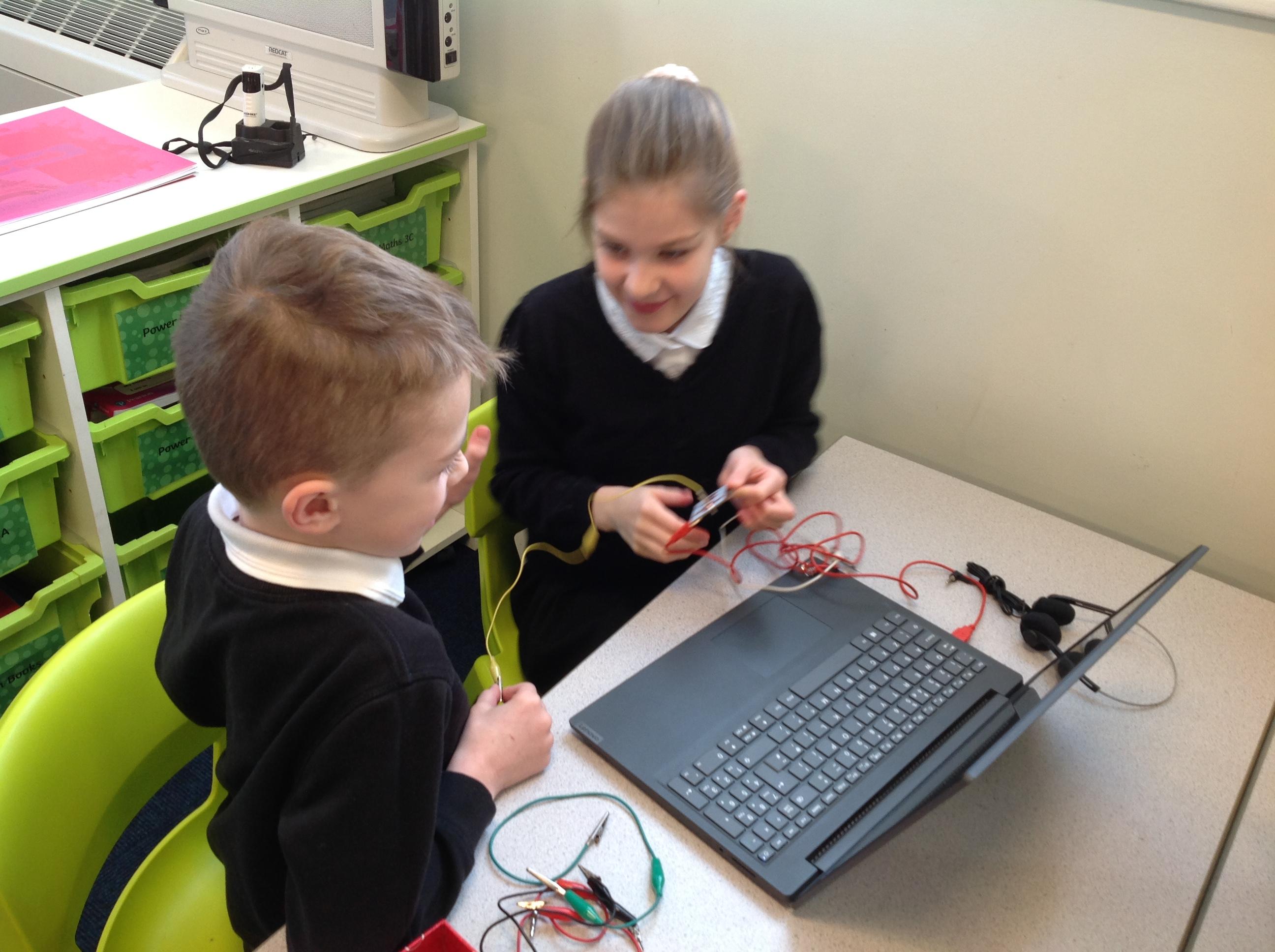 We had a workshop from conductive music. We became the switch in a circuit and explored how electricity can be conducted through different materials.