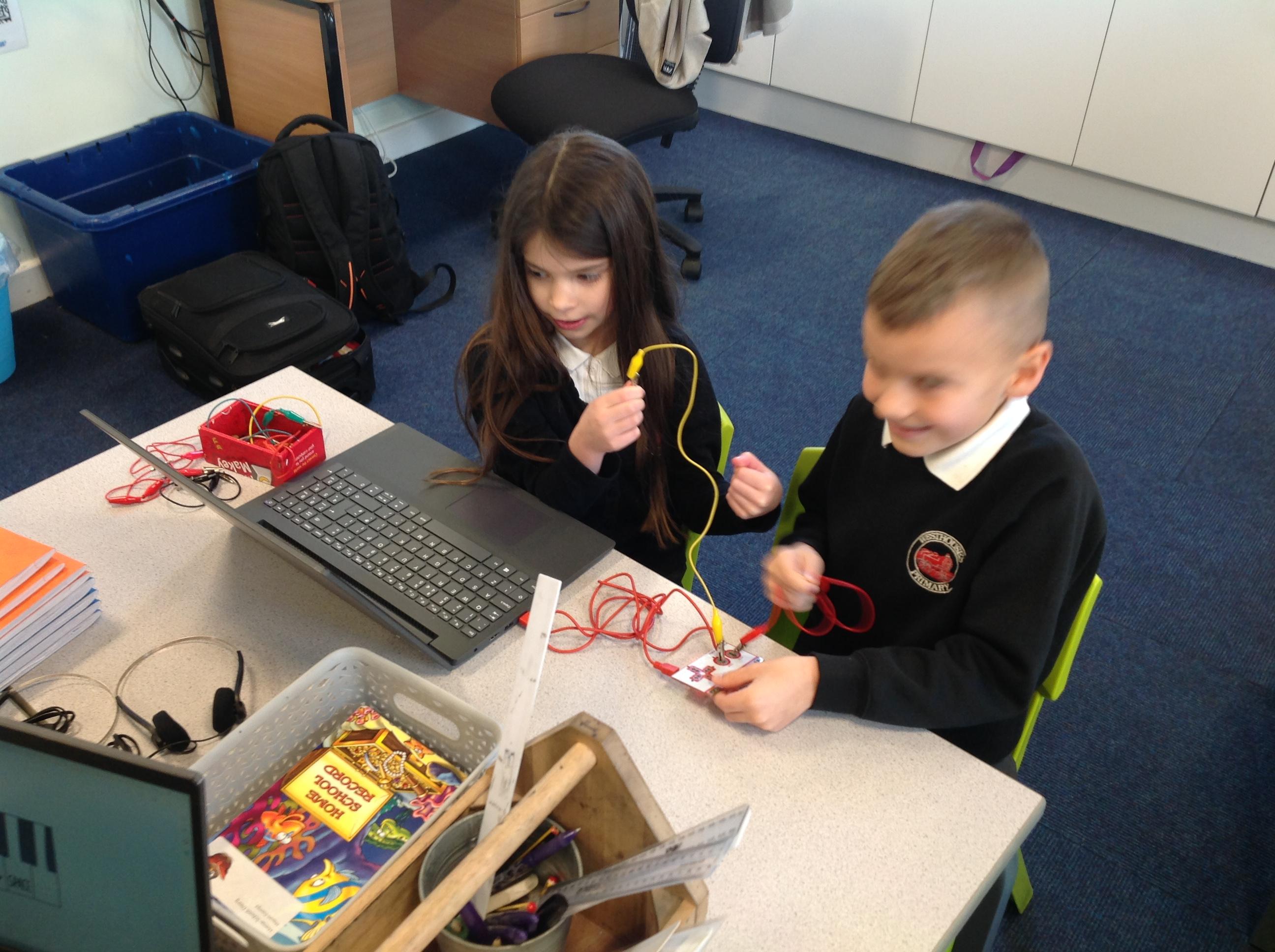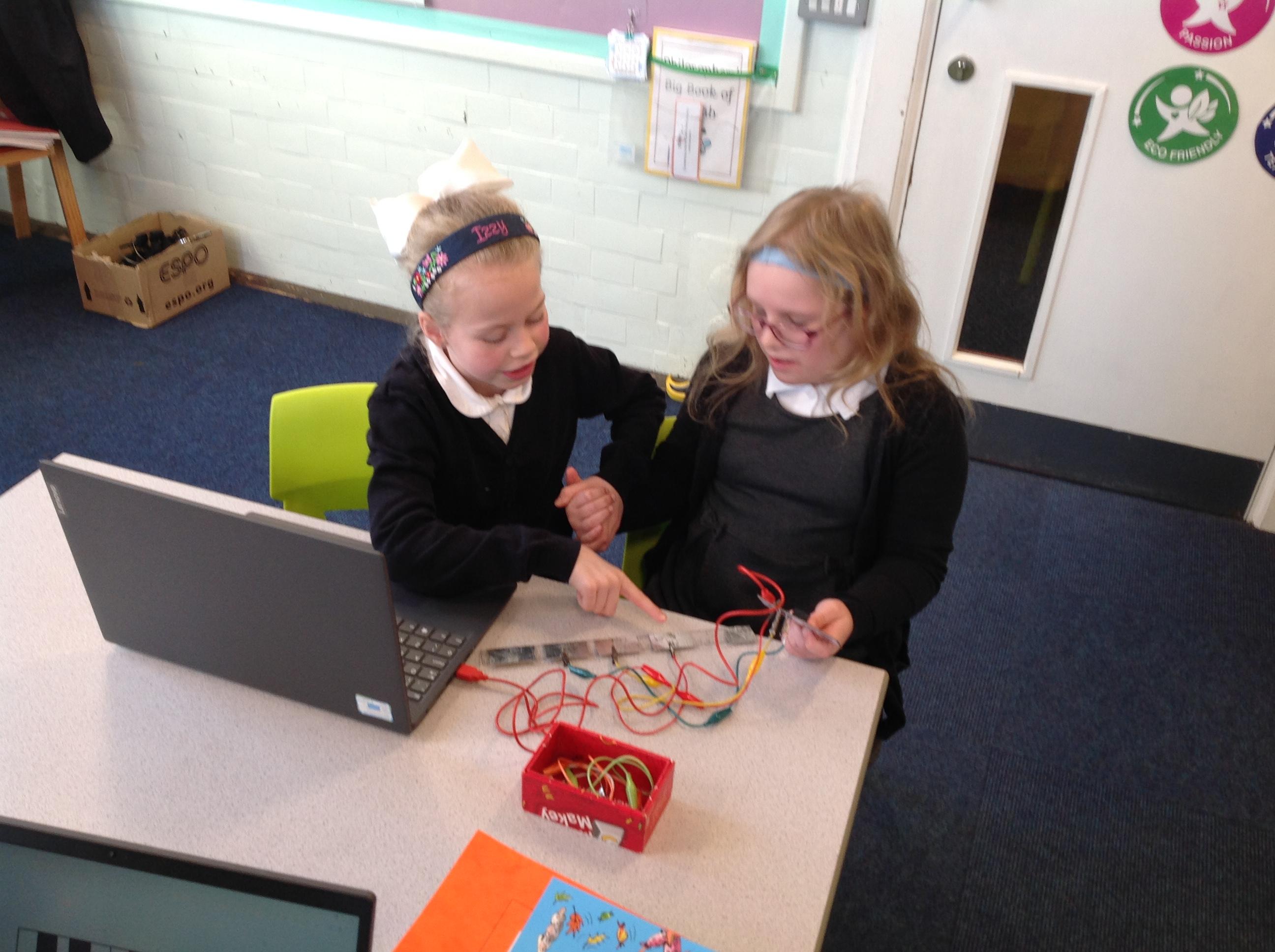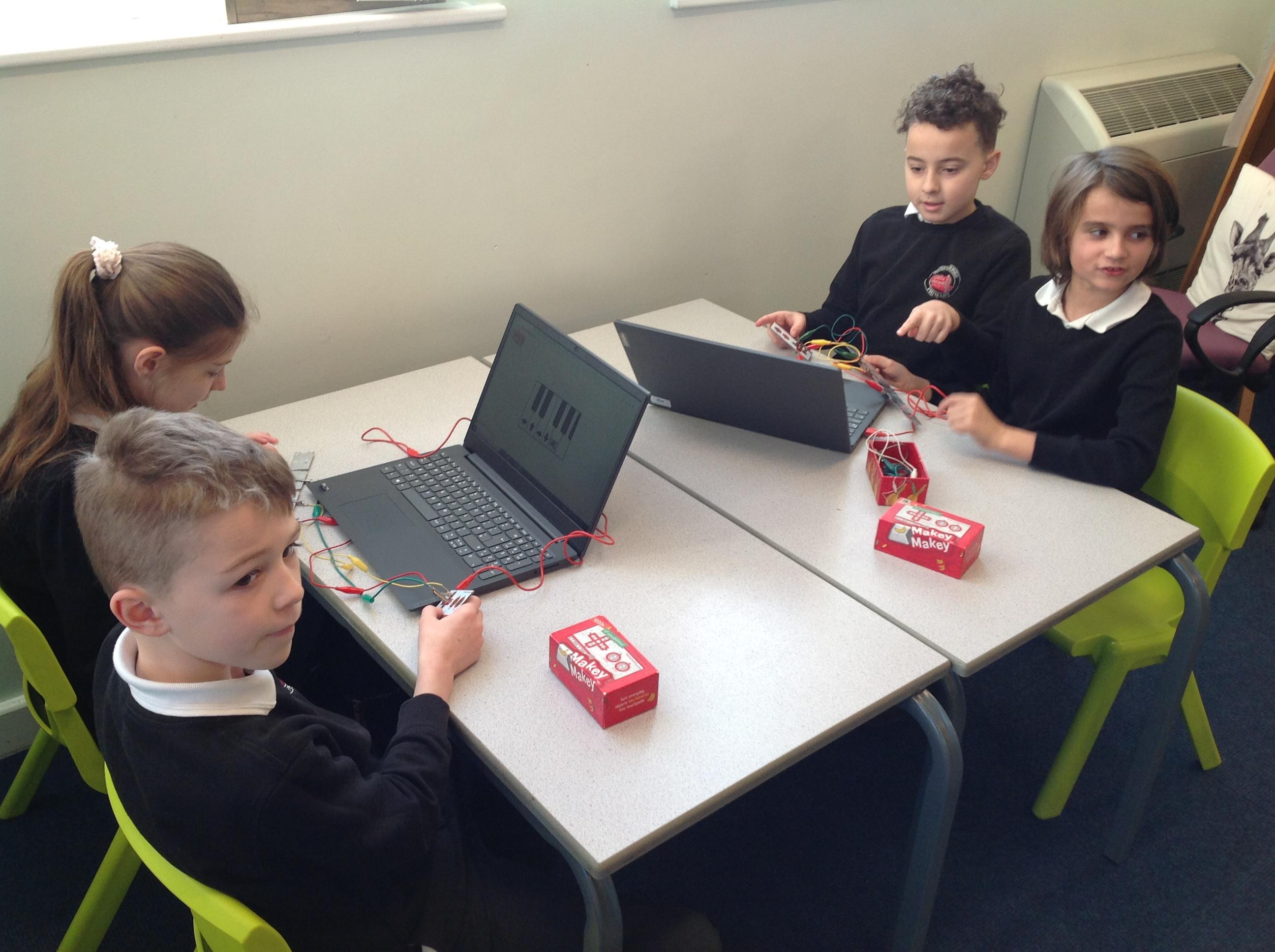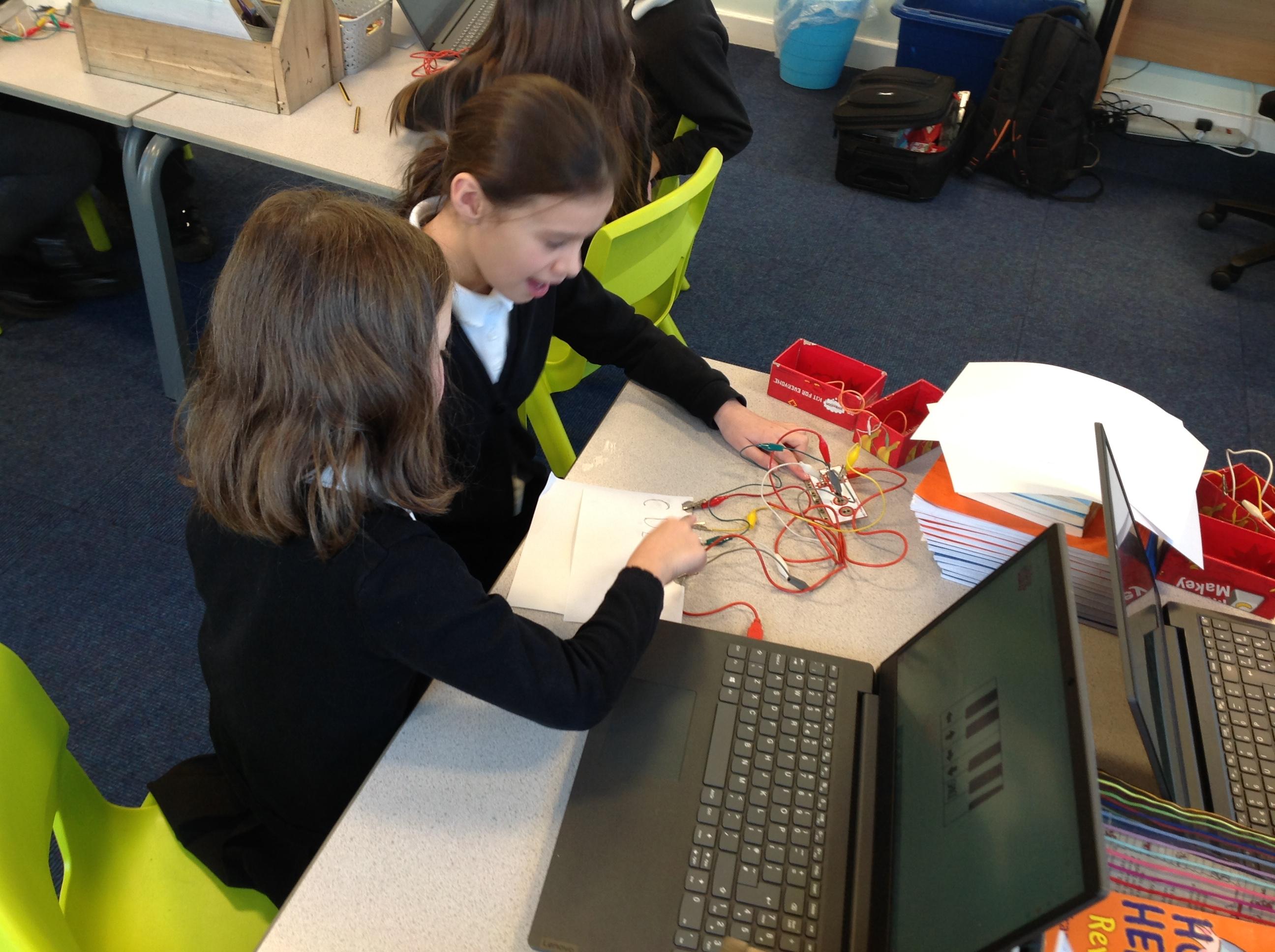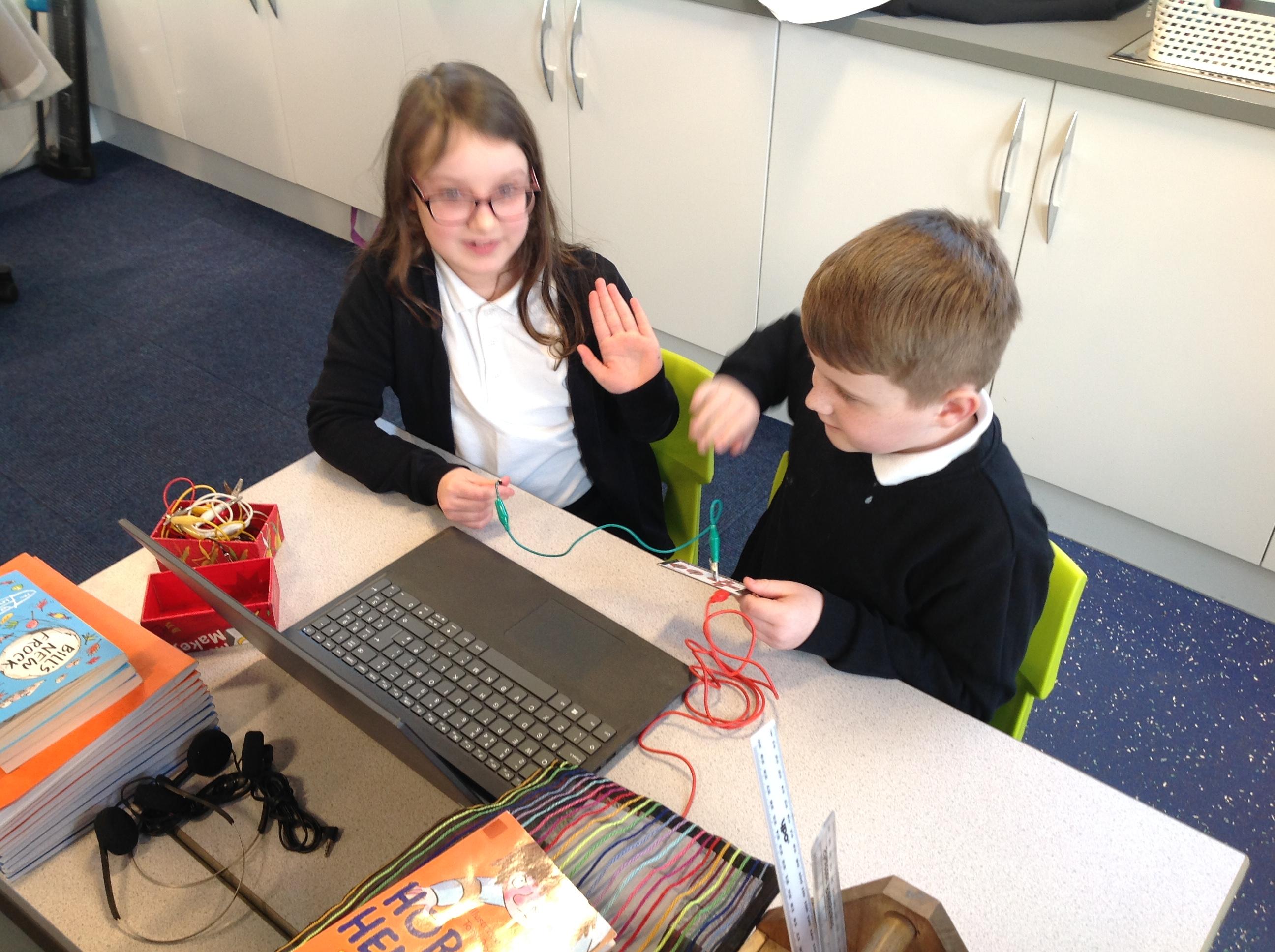 We had a workshop from conductive music. We became the switch in a circuit and explored how electricity can be conducted through different materials.