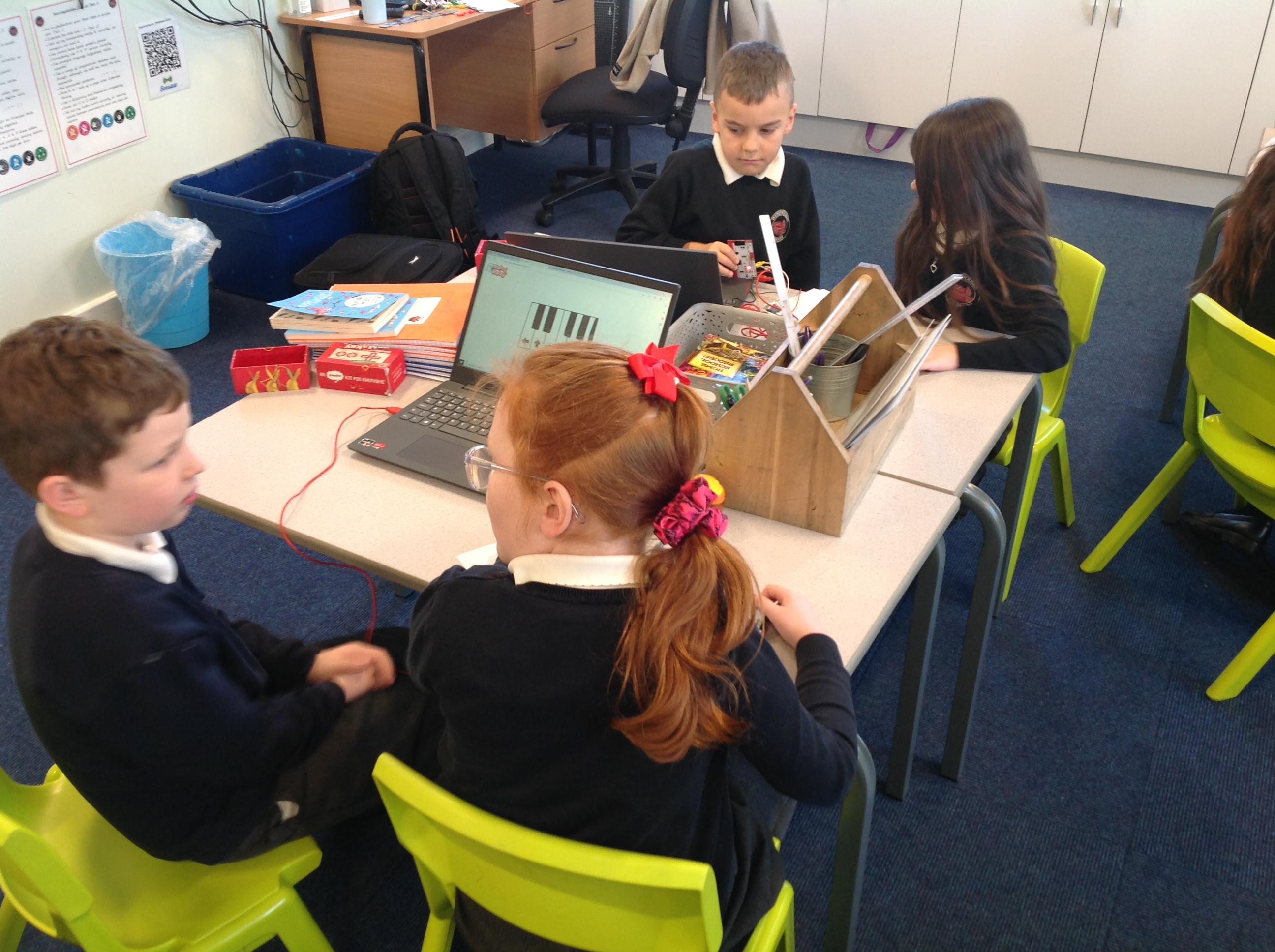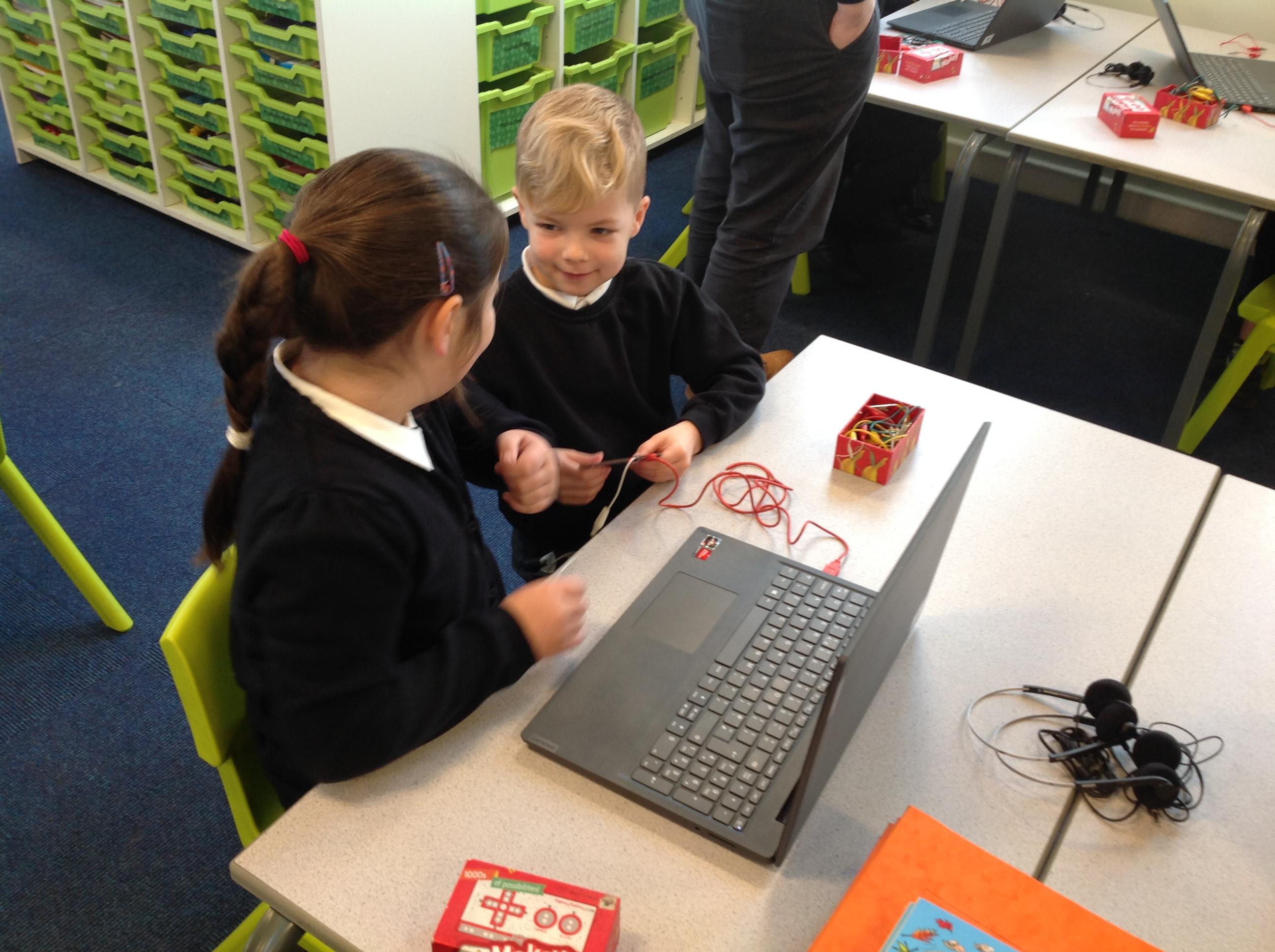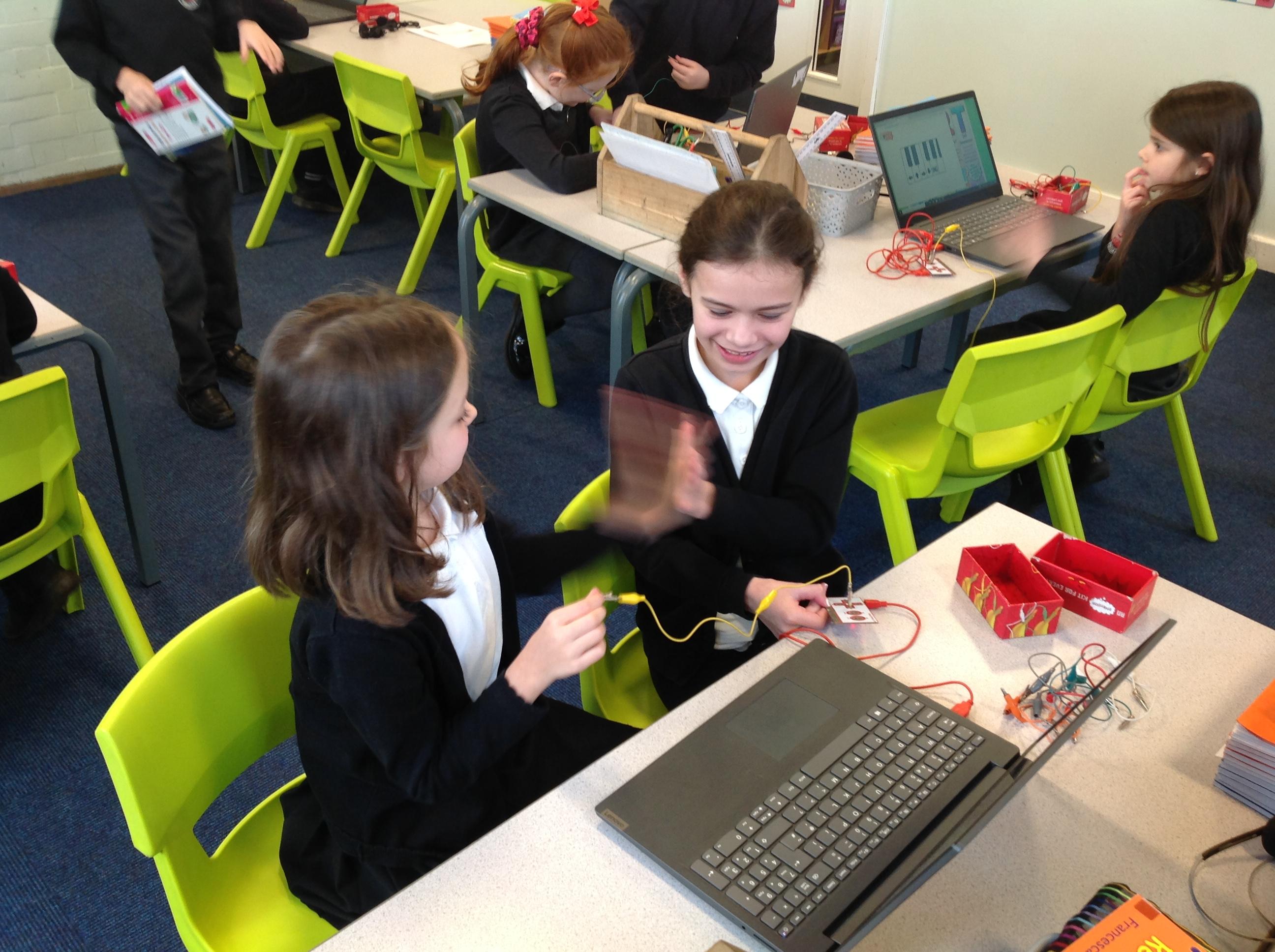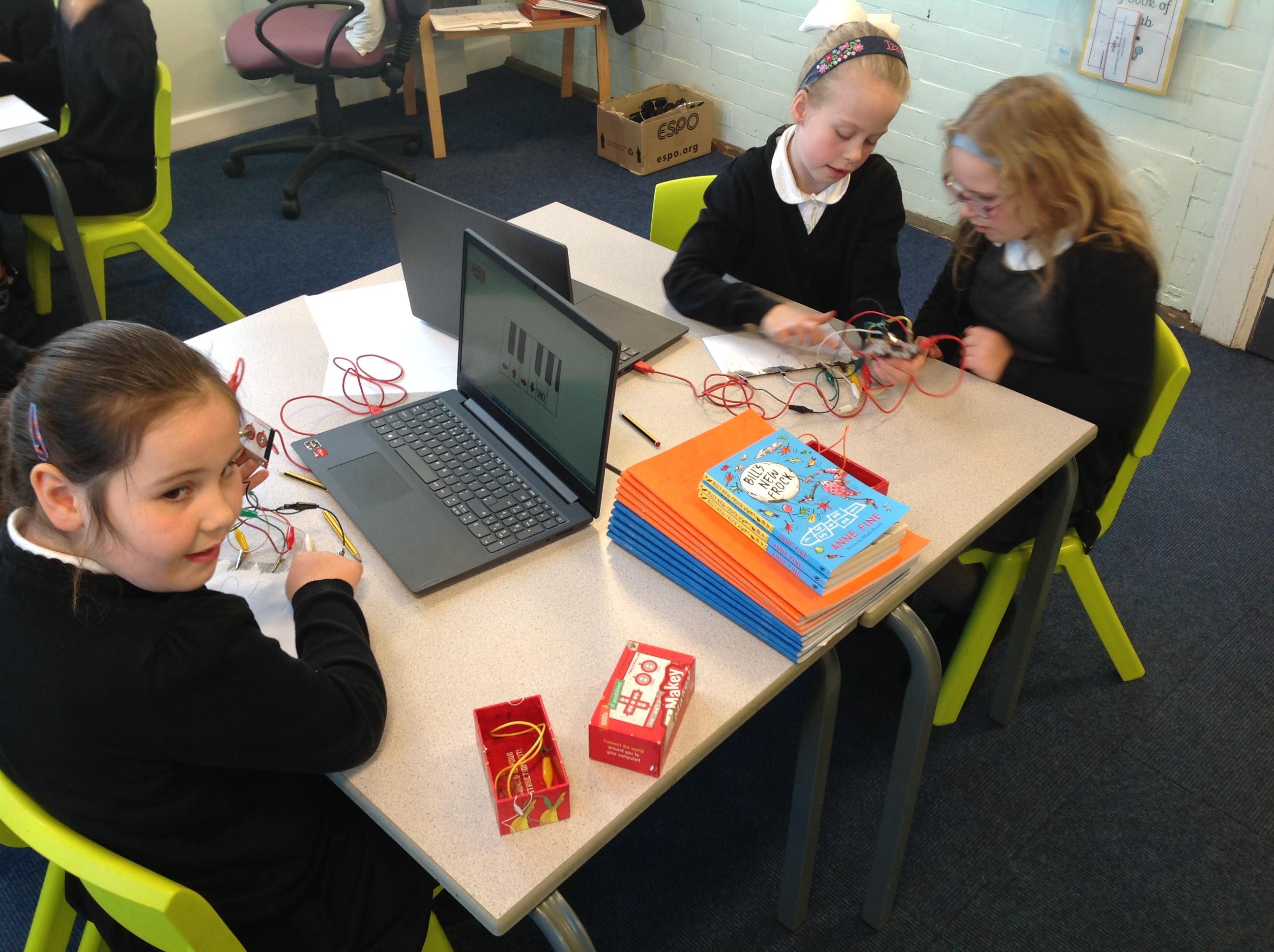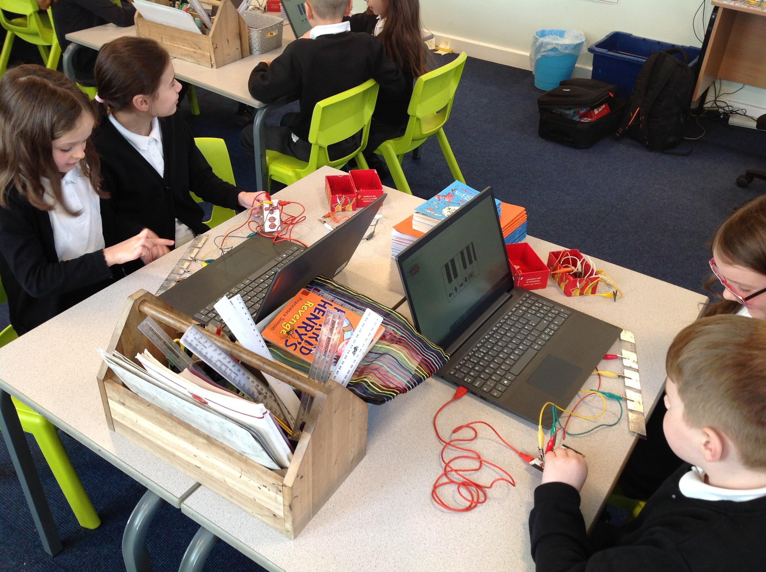 We had a workshop from conductive music. We became the switch in a circuit and explored how electricity can be conducted through different materials.