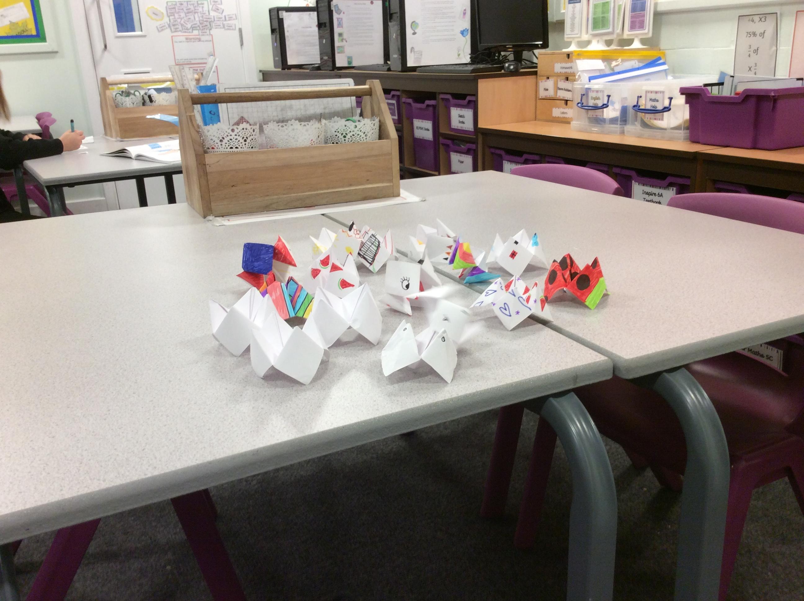 Origami club is back! Look at our creations this week.