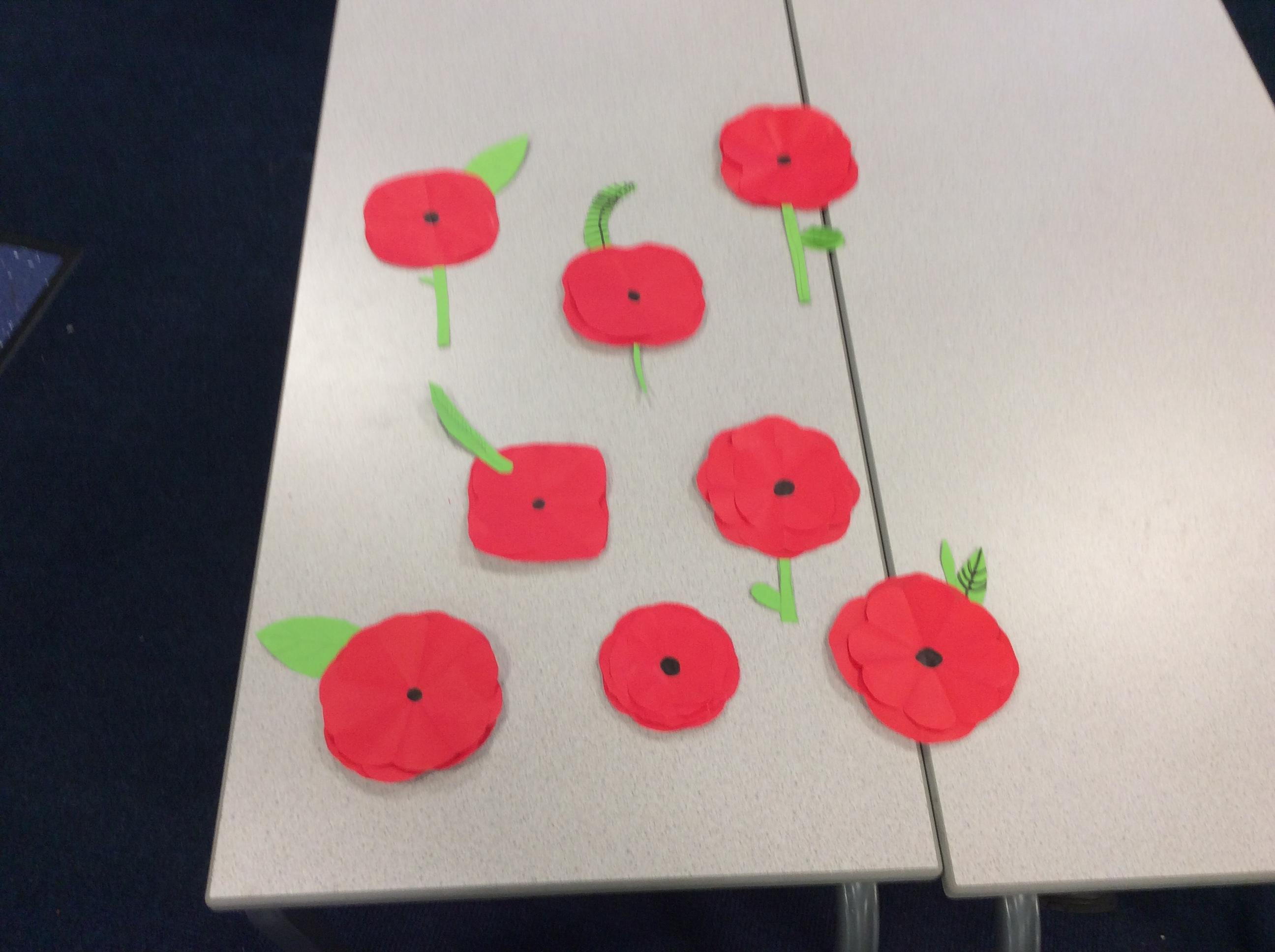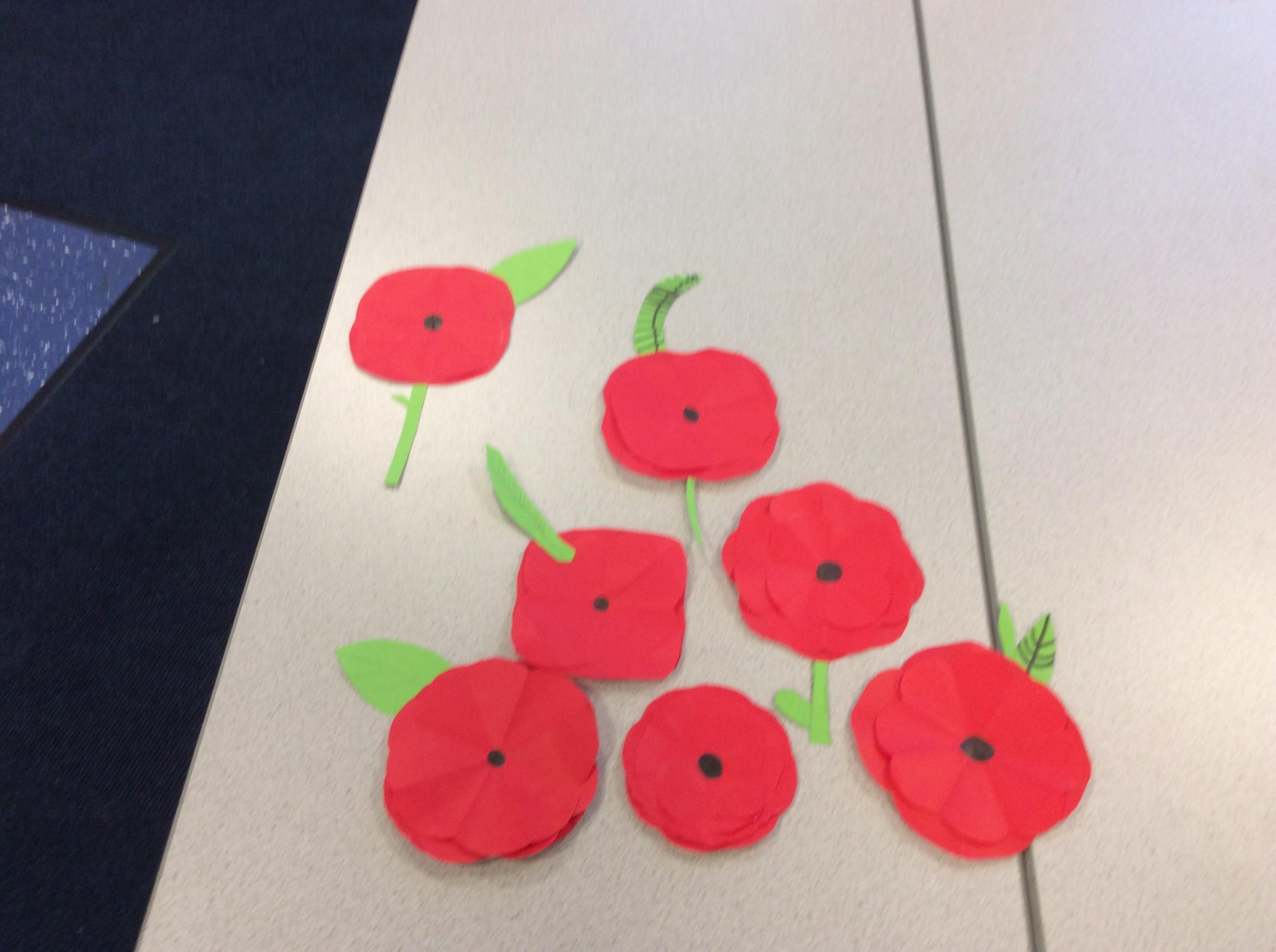 Origami club made Remembrance Day Poppies this week.