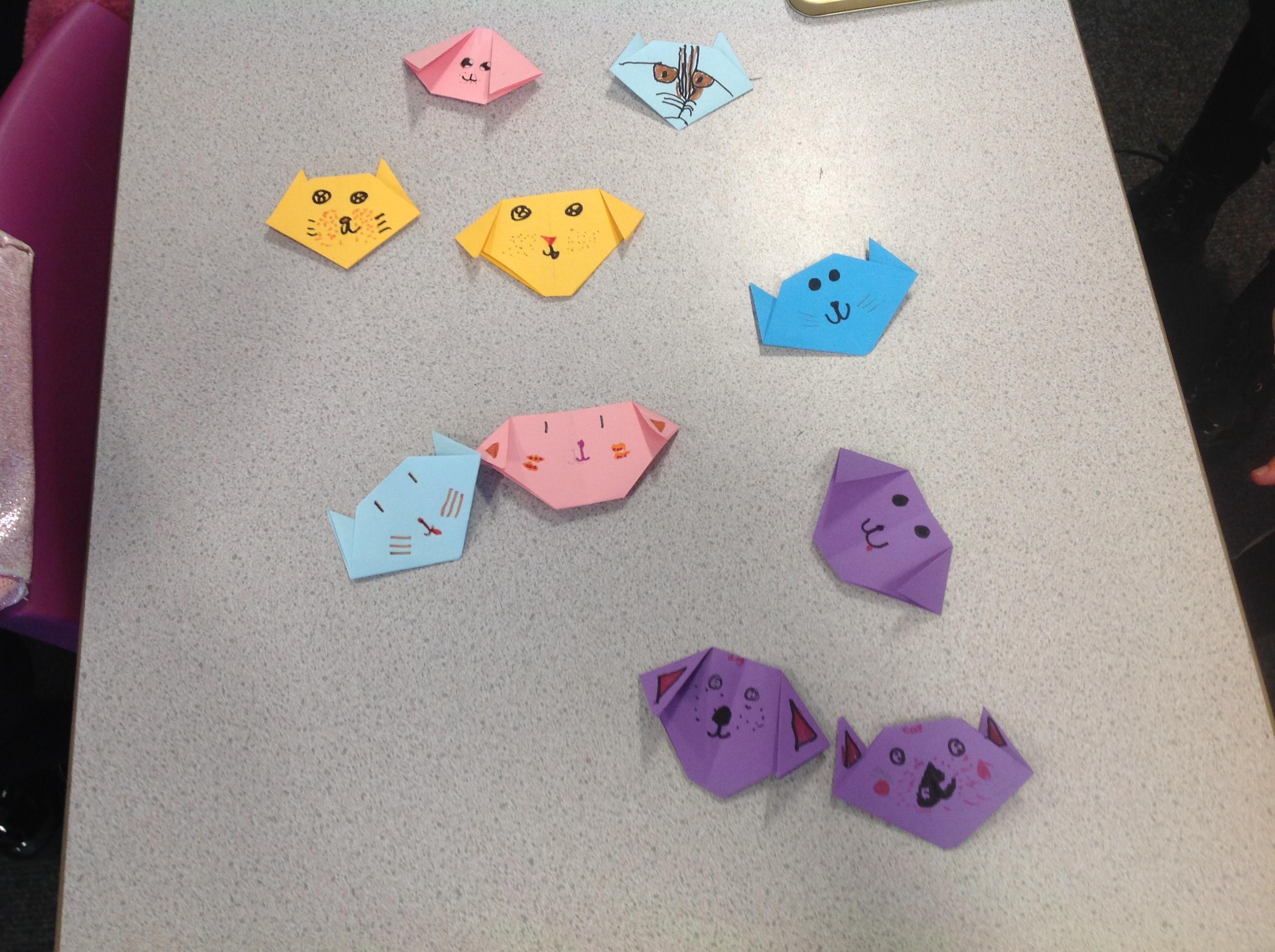 Its the first week back of Origami club and it's of to a great start - check out the childrens origami cats and dogs!